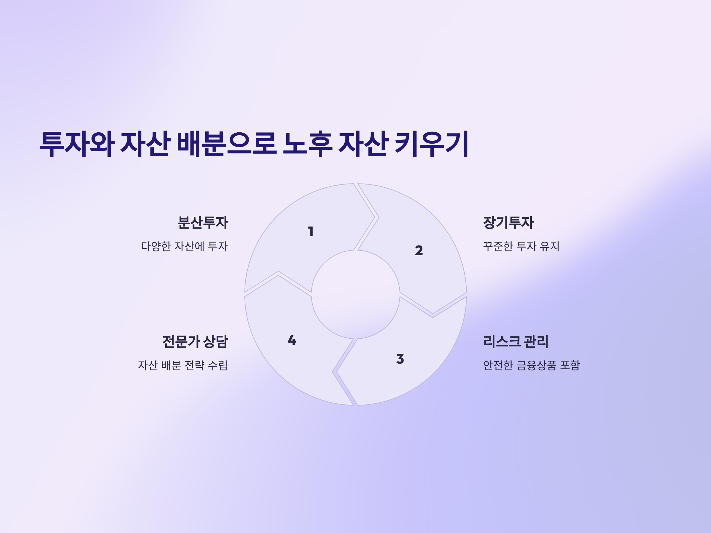 특히, 장기적인 투자 계획을 세우고 꾸준히 투자를 이어가는 것이 중요합니다. 주식이나 부동산 투자는 높은 리스크를 동반할 수 있지만, 신중하게 계획하고 실행하면 자산을 크게 늘릴 수 있는 방법이 될 수 있습니다. 또한, 분산 투자 원칙을 지키며 자산의 일부는 안전한 금융 상품에 투자하는 것이 바람직합니다.