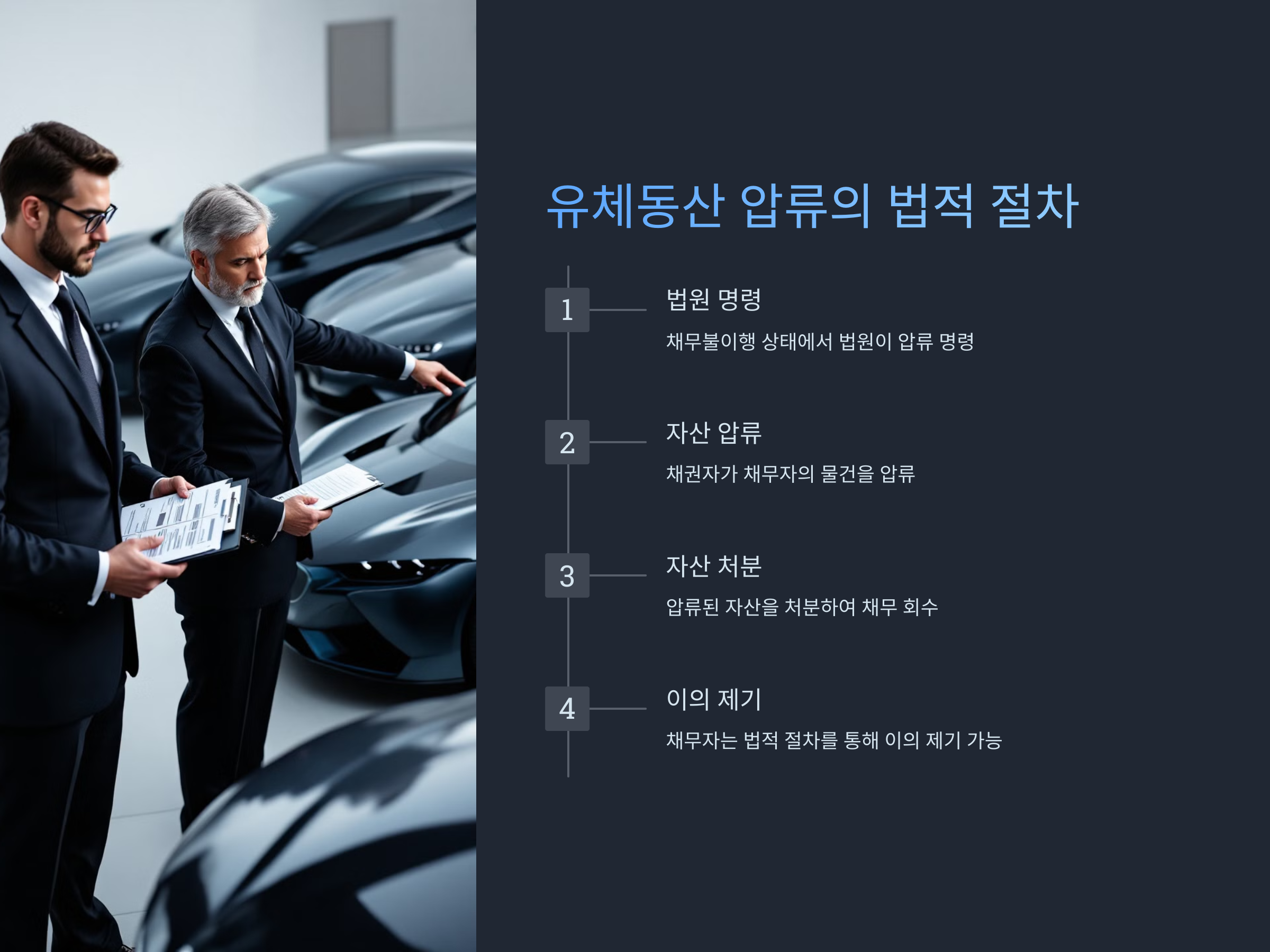 채무자가 유체동산 압류를 받은 후 자산을 회수하려면, 채무자가 채무를 일부 상환하거나, 일정한 조건을 충족시켜야 할 수도 있습니다. 이는 법적 절차에 따라 달라지기 때문에, 상황에 맞는 대처 방법을 신속하게 선택하는 것이 중요합니다. 유체동산 압류와 관련된 법적 절차를 잘 알고 대처하면, 불리한 상황을 피할 수 있습니다.