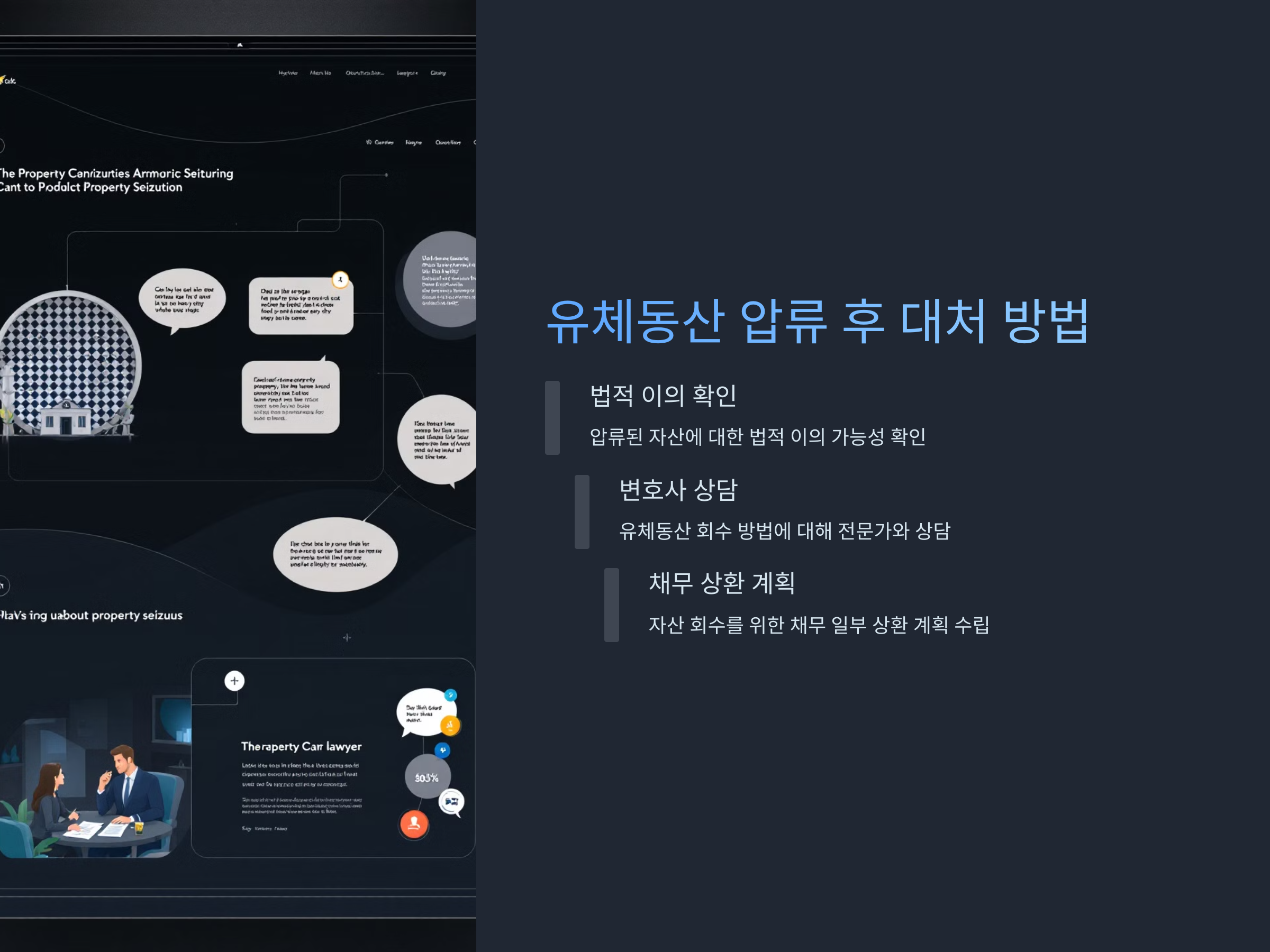 압류된 자산이 중요한 자산일 경우, 채무자는 자산을 되찾기 위해 대출이나 다른 방법을 통해 자금을 마련해야 할 수 있습니다. 하지만 유체동산 압류가 이루어진 후, 채무자는 자산을 회수하기 어려운 경우가 많기 때문에, 압류 절차를 예방하는 것이 중요합니다. 이와 관련된 법적 조치를 취할 때는 전문가의 도움을 받는 것이 좋습니다.