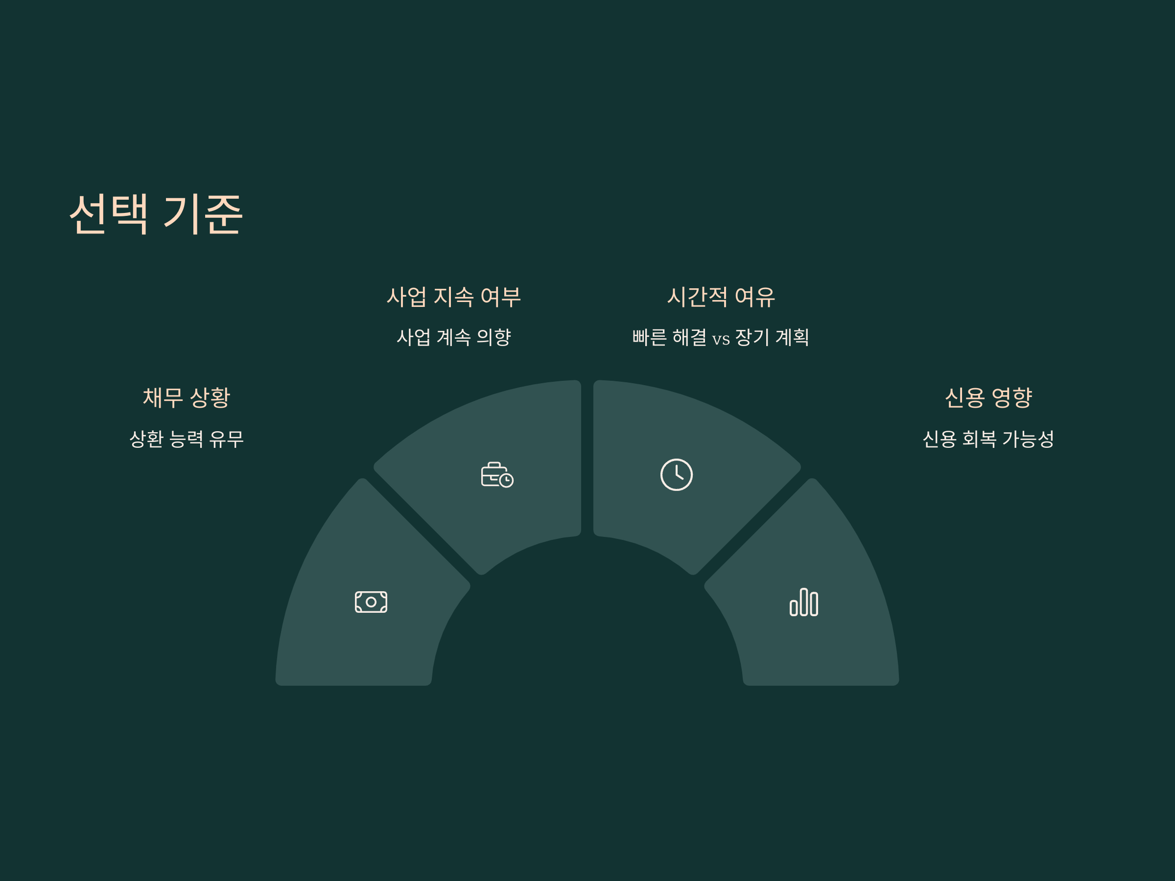 - 파산면책: 빠른 해결을 원할 때, 간단한 절차를 통해 빠르게 회복하고 싶을 때 선택하는 것이 좋습니다.