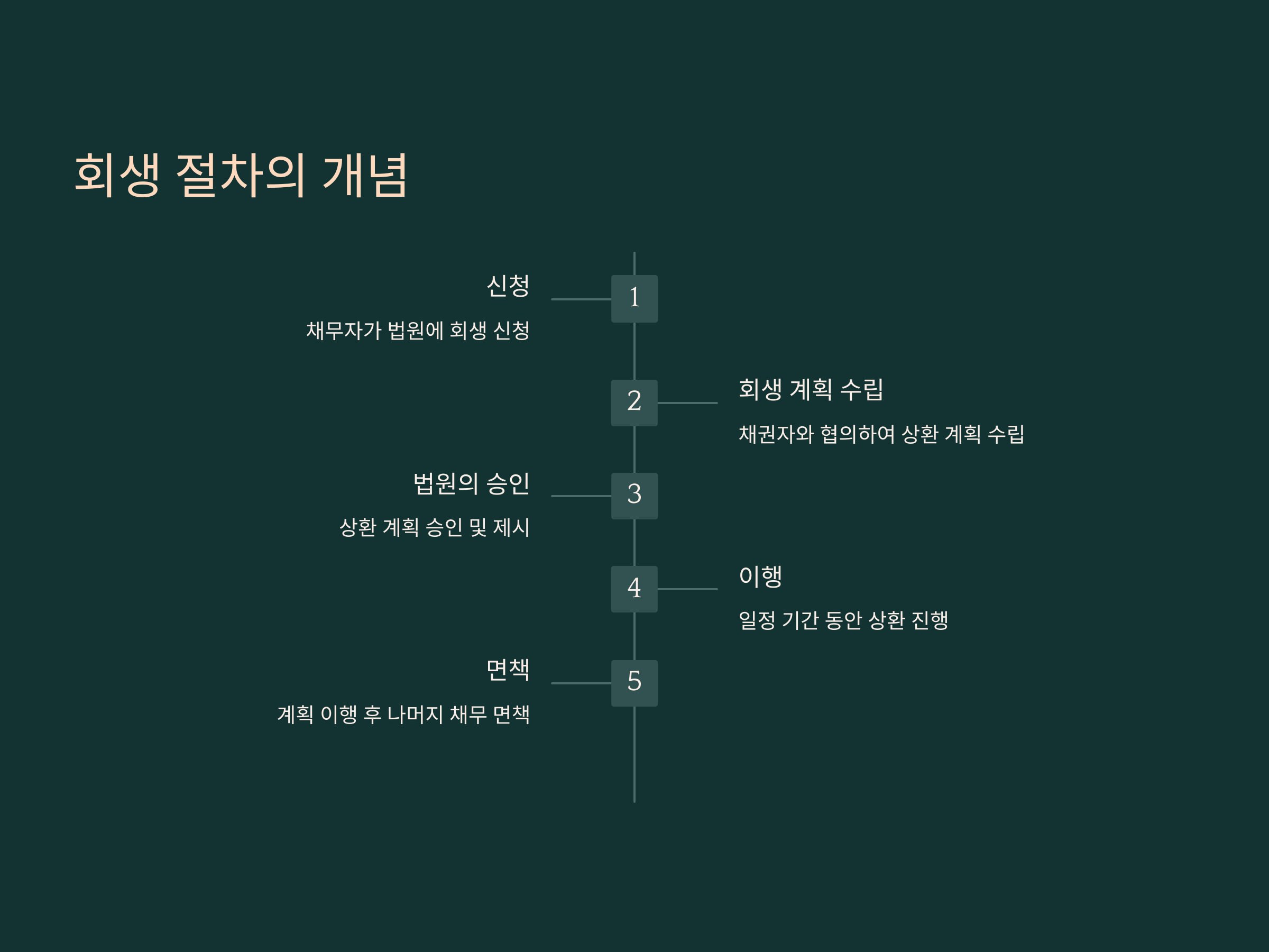 - 신청: 회생 절차는 채무자가 법원에 회생 신청을 합니다.