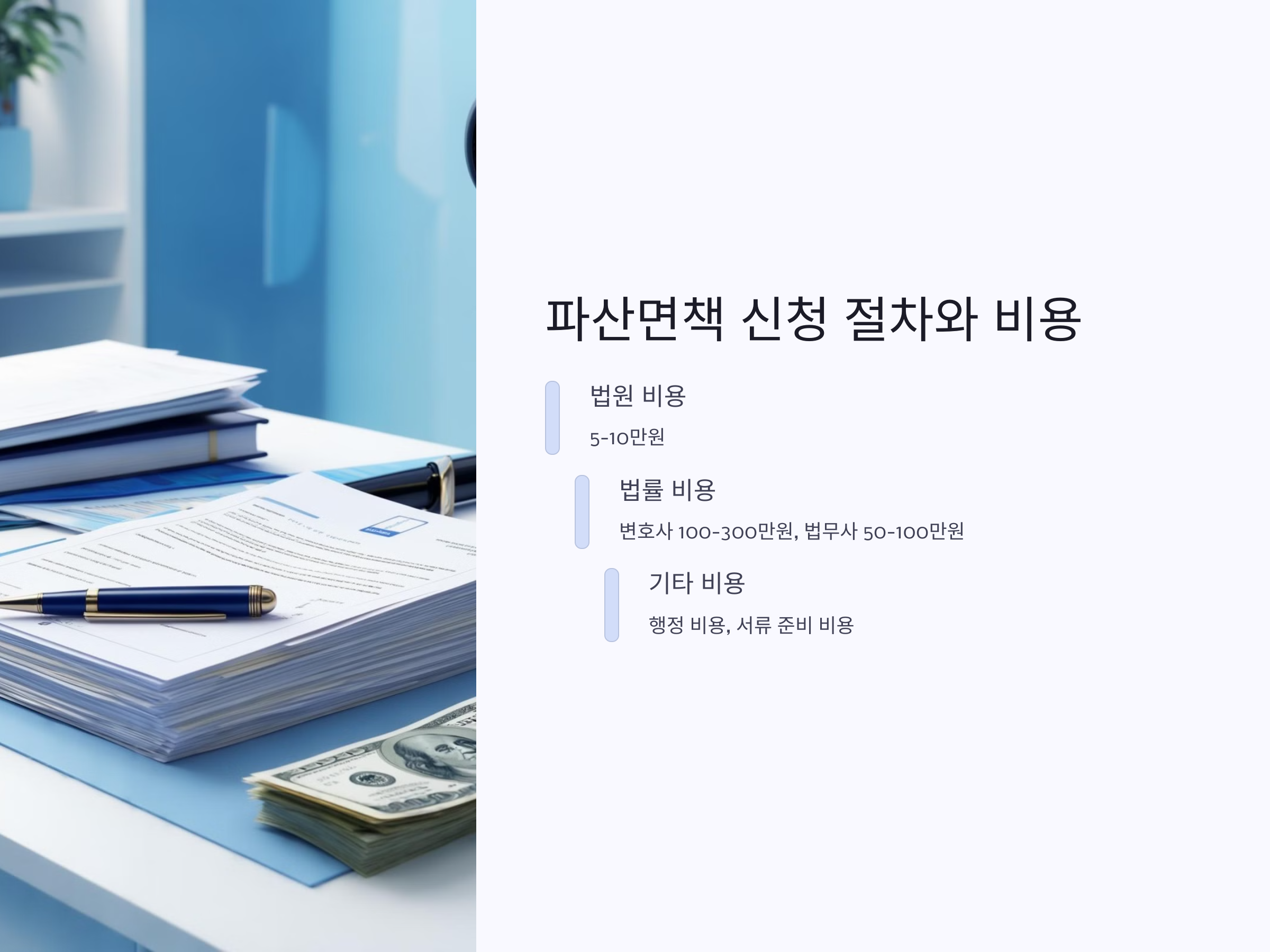 파산면책을 통해 채무를 탕감받고 새로운 시작을 할 수 있다는 점에서 많은 사람들이 이 제도를 활용하려 합니다. 하지만 이 과정에서 발생하는 비용에 대해 제대로 파악하지 않으면 불필요한 낭비나 절차적인 실수가 발생할 수 있습니다. 이번 포스팅에서는 파산면책 신청에 필요한 비용을 자세히 알아보고, 절차를 원활하게 진행하기 위한 팁까지 제공합니다.