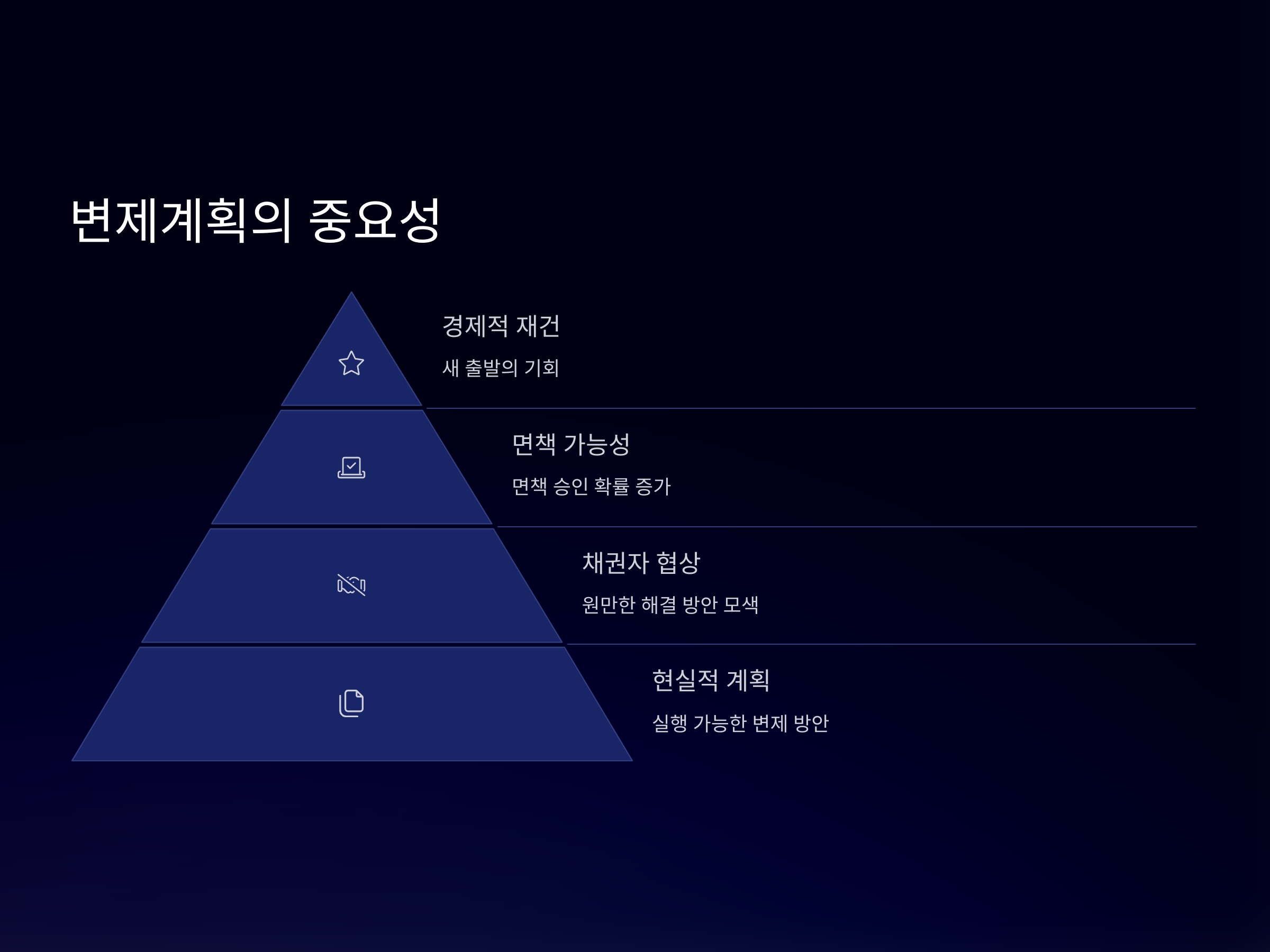파산면책을 신청하기 전, 변제계획에 대해 정확히 이해하는 것이 중요합니다. 변제계획은 채무자가 법원에 제출하여, 자산을 어떻게 분배하고, 채무를 어떻게 변제할지를 정리한 계획입니다. 이를 통해 채무자는 법원으로부터 변제기간을 정해받고, 그 기간 내에 가능한 범위에서 채무를 해결하게 됩니다. 변제계획이 승인되면 면책을 받을 수 있는 기회를 얻을 수 있습니다.