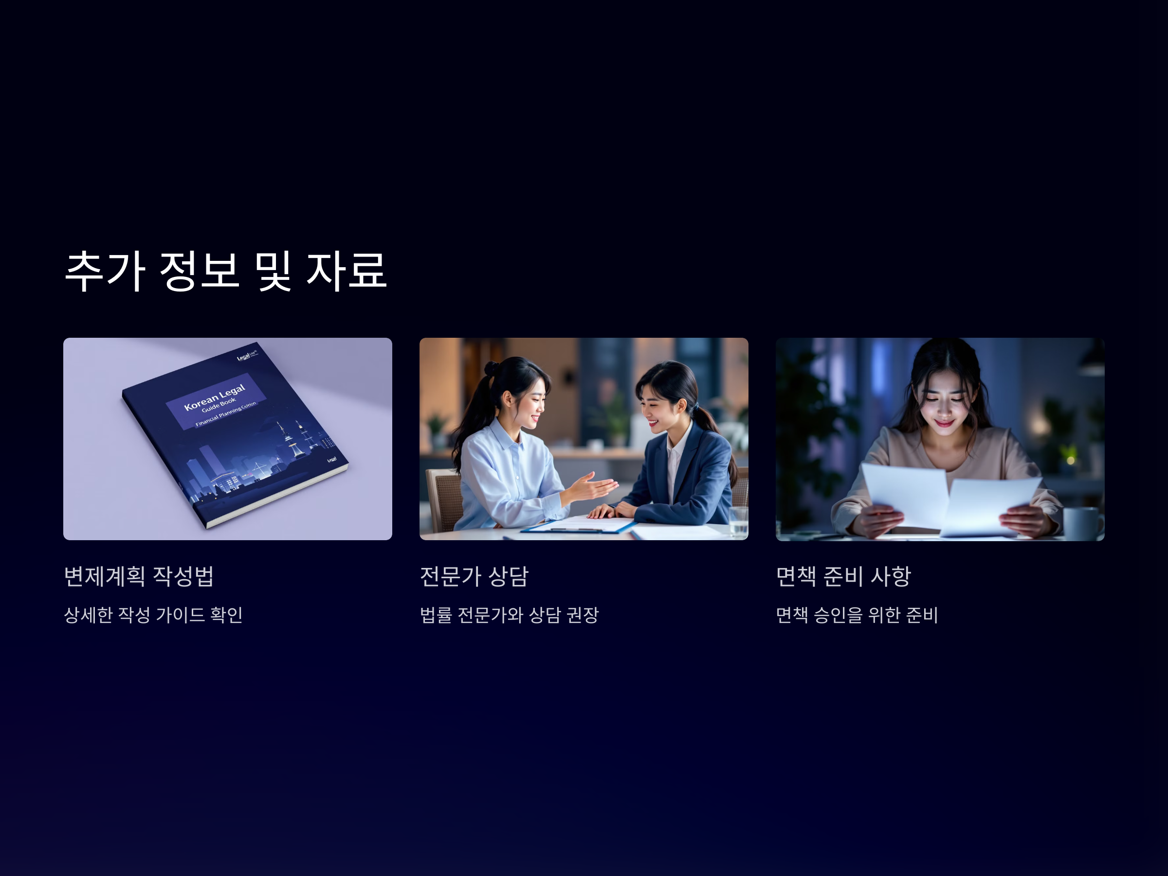 자세히 알아보기 변제계획 작성법 확인하기 면책 승인을 위한 준비 사항