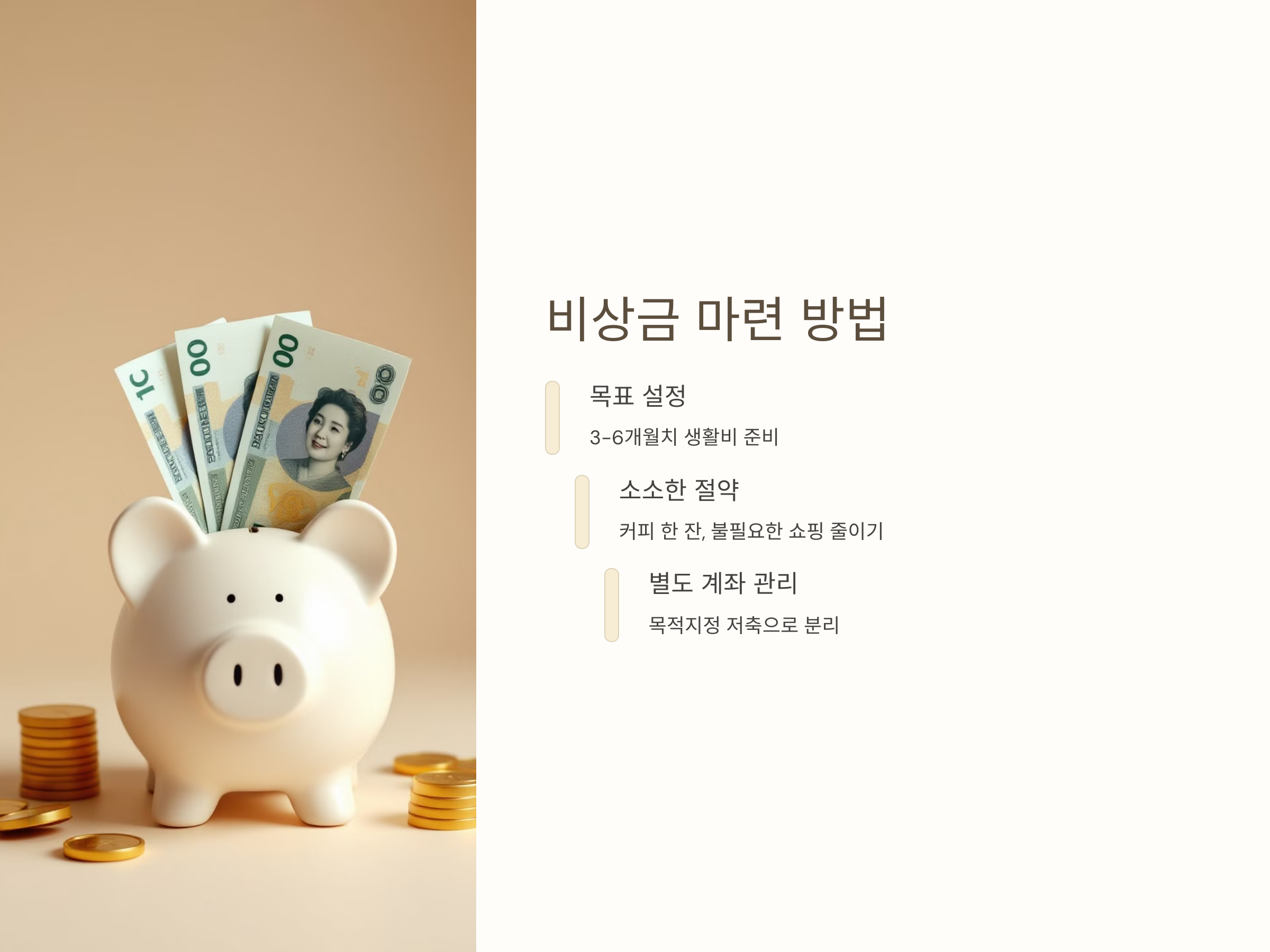 비상금을 만들 때 중요한 점은, 이를 ‘목적지정’ 저축으로 분리하는 것입니다. 일반적인 저축계좌와 별도로 비상금 계좌를 따로 만들어두고, 그 계좌로 꾸준히 돈을 넣어두는 방식으로 비상금을 마련할 수 있습니다.