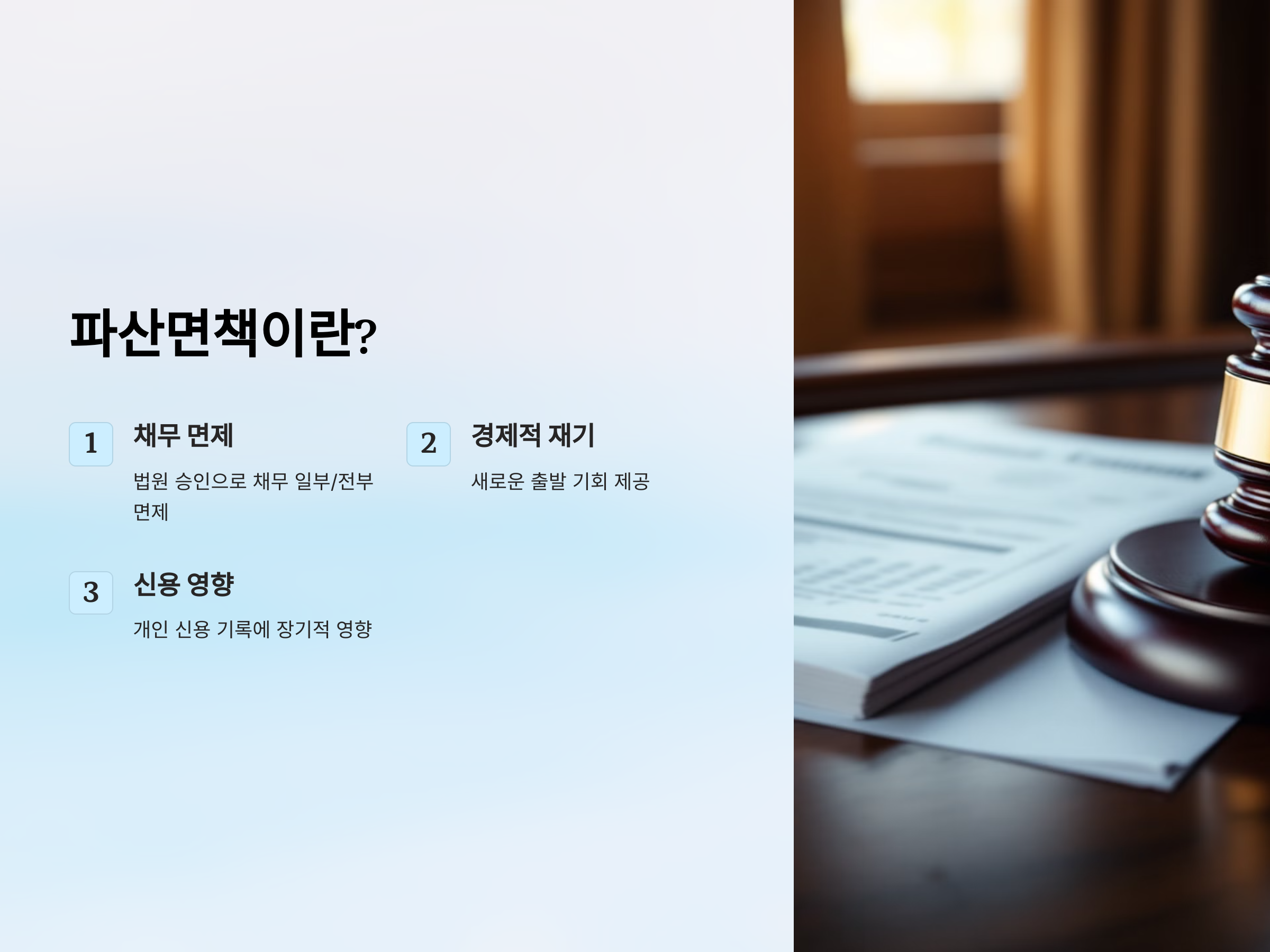 파산면책은 파산을 신청한 개인이나 기업이 법원의 승인을 받아 채무의 일부 또는 전부를 면제받는 제도입니다. 채무자가 자신의 모든 자산을 처분하고 채권자에게 분배한 후, 일정 조건 하에 채무를 면제받게 되는 것입니다. 이를 통해 경제적 재기의 기회를 제공하고, 채무자가 더 이상 과거의 채무로부터 벗어나 새롭게 출발할 수 있도록 돕는 제도입니다.