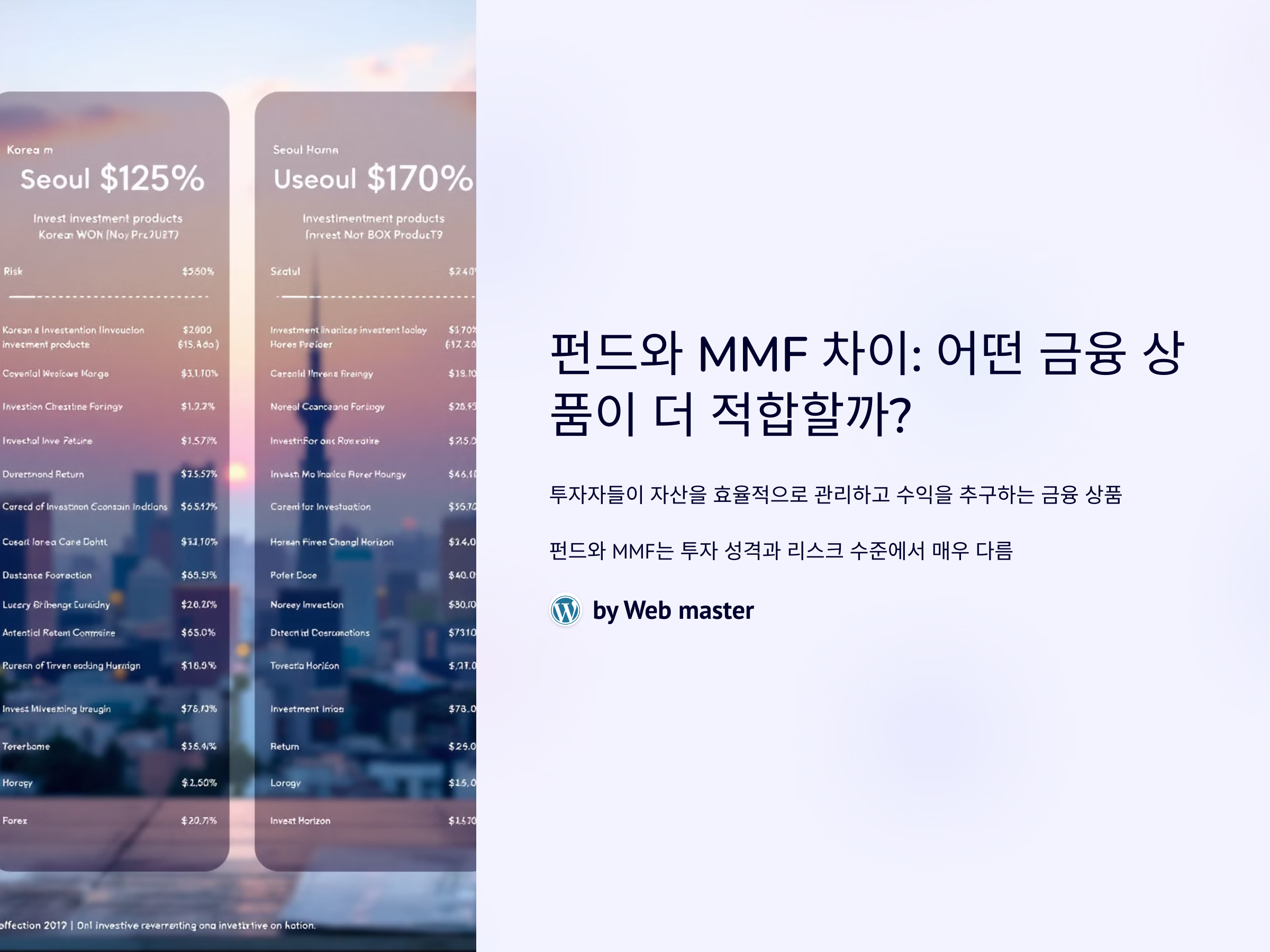 최근 금융 시장에서는 다양한 투자 옵션들이 제공되고 있으며, 투자자들은 펀드와 MMF와 같은 상품을 통해 자산을 효율적으로 관리하고 수익을 추구합니다. 하지만 펀드와 MMF는 각기 다른 목적과 특징을 지닌 만큼, 투자 전에 꼭 알아두어야 할 정보가 있습니다.