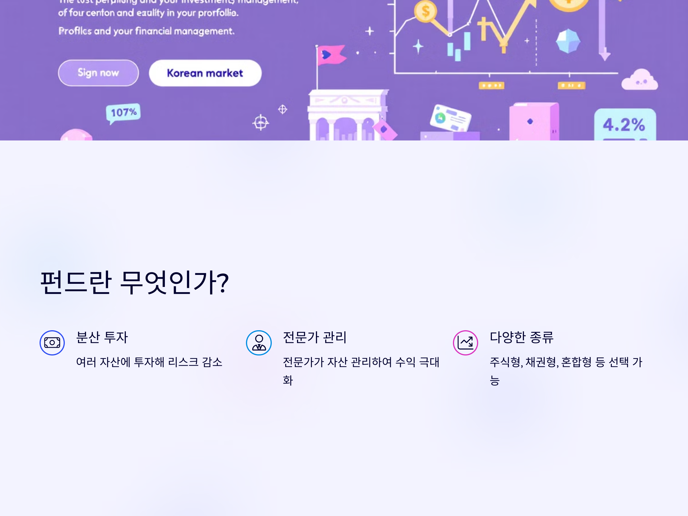 펀드는 여러 투자자들이 자금을 모아 전문가가 대신 관리하고 다양한 자산에 분산 투자하는 상품입니다. 펀드는 기본적으로 주식, 채권, 부동산 등 다양한 금융 상품에 투자하여 투자자들에게 수익을 창출하는 것을 목표로 합니다. 펀드의 종류에는 주식형, 채권형, 혼합형 등이 있으며, 각각의 특성에 따라 리스크와 수익률이 다릅니다.
