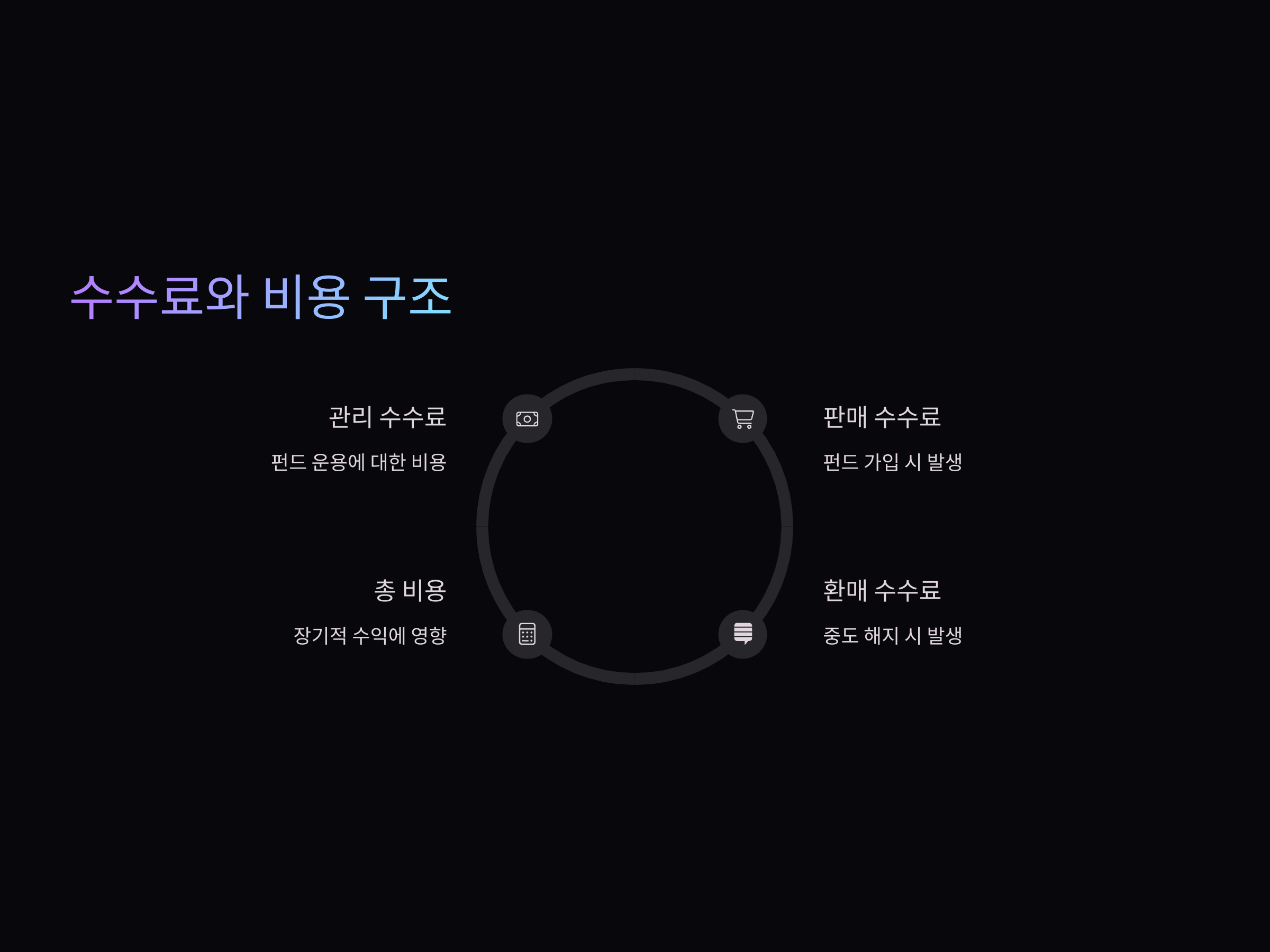 수수료 외에도 펀드 운영 방식에 따라 발생하는 비용이 다를 수 있으므로, 예상되는 총 비용을 정확히 파악하여 불필요한 비용을 줄이는 것이 좋습니다.