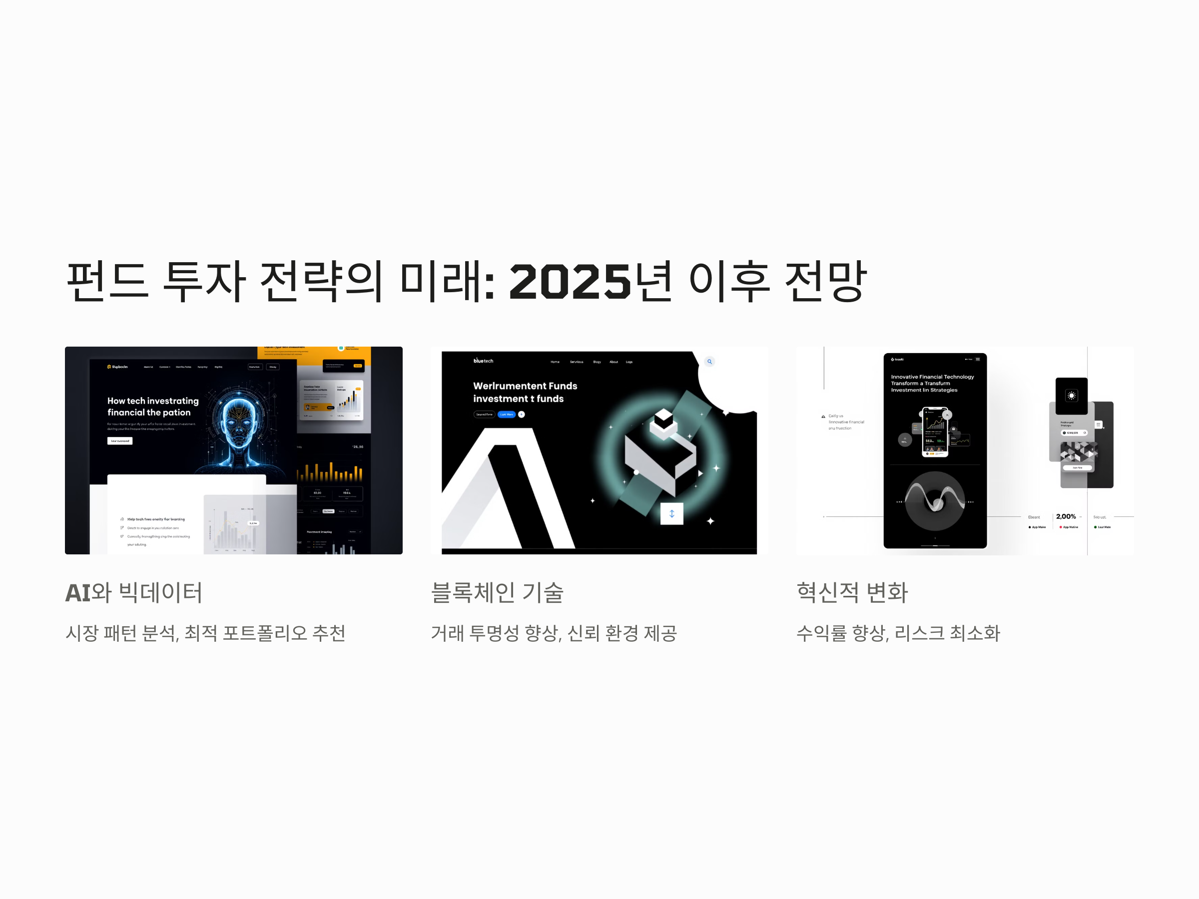 최근 연구에서는 AI와 블록체인 기술이 펀드 투자의 미래를 혁신적으로 변화시킬 수 있다는 점에서 큰 주목을 받고 있습니다. 특히, 이러한 기술들은 투자자들에게 더 나은 수익률을 제공하면서도 리스크를 최소화하는 데 중요한 역할을 할 것입니다.