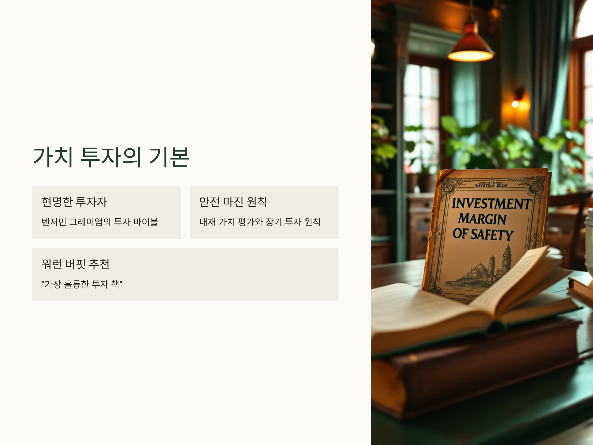 가치 투자의 아버지로 불리는 벤저민 그레이엄이 쓴 투자자들의 바이블로, 안전 마진(Margin of Safety)과 내재 가치 평가, 장기 투자 원칙 등을 다룹니다. 워런 버핏이 이 책을 "가장 훌륭한 투자 책"으로 꼽았습니다. citeturn0search5