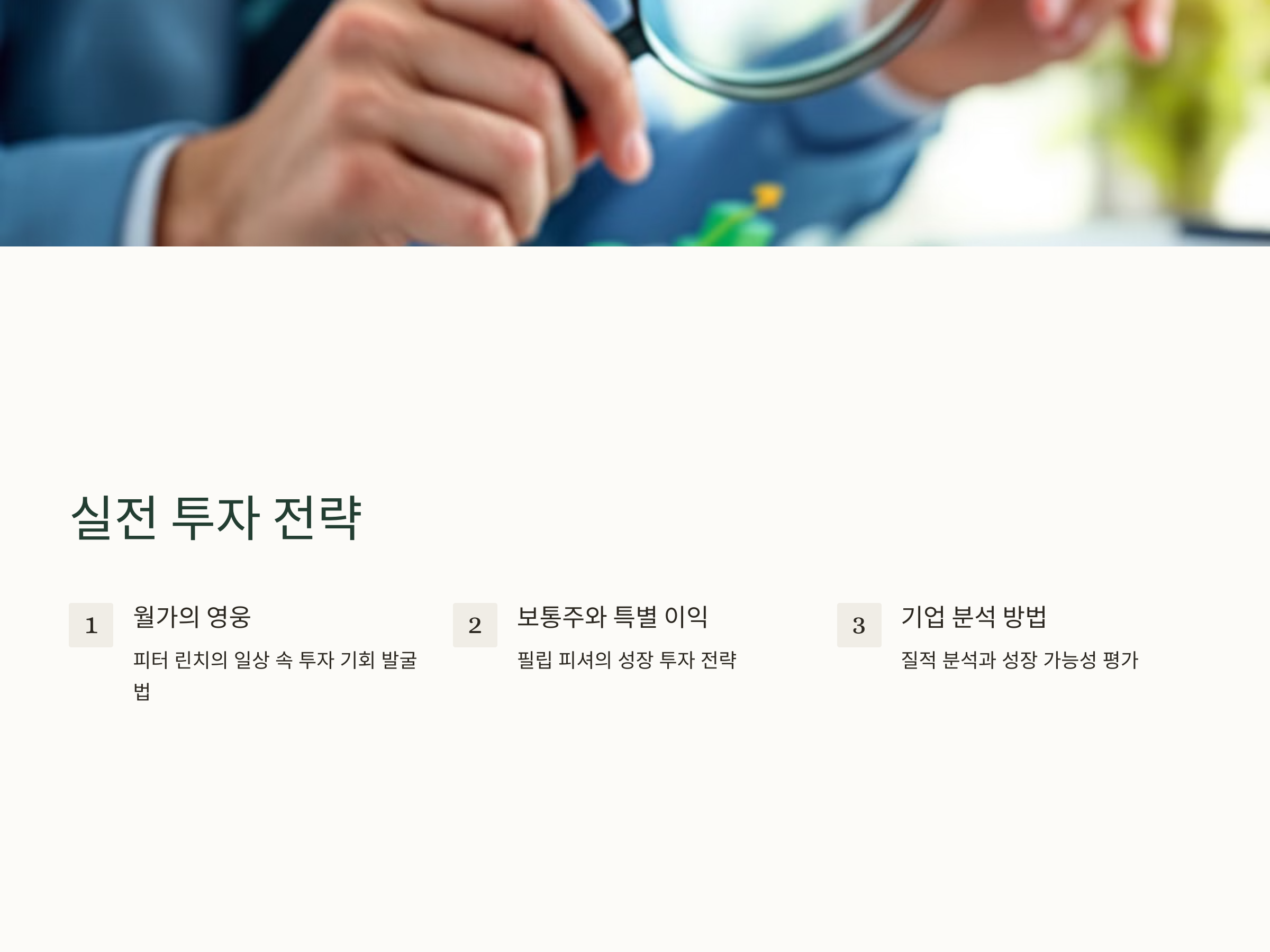 피터 린치가 일상 속에서 투자 기회를 찾는 방법과 성공적인 종목 발굴 방식을 소개합니다. citeturn0search4