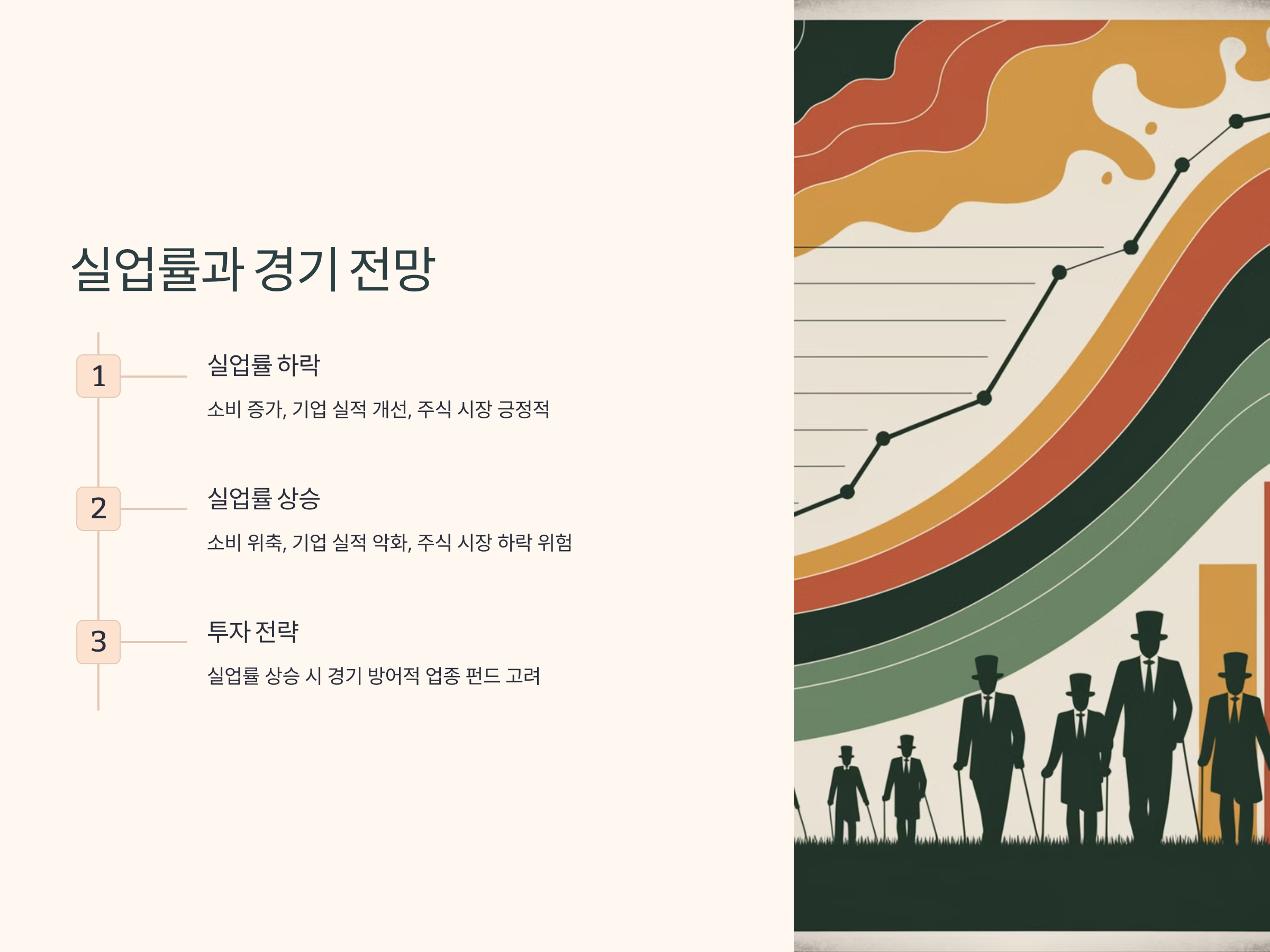 따라서 실업률 동향을 주시하면서 경기 흐름에 맞춰 포트폴리오를 조정하는 것이 중요합니다. 예를 들어, 실업률이 상승하는 시기에는 경기 방어적인 업종(예: 필수소비재, 헬스케어) 관련 펀드를 고려하는 것이 좋습니다.