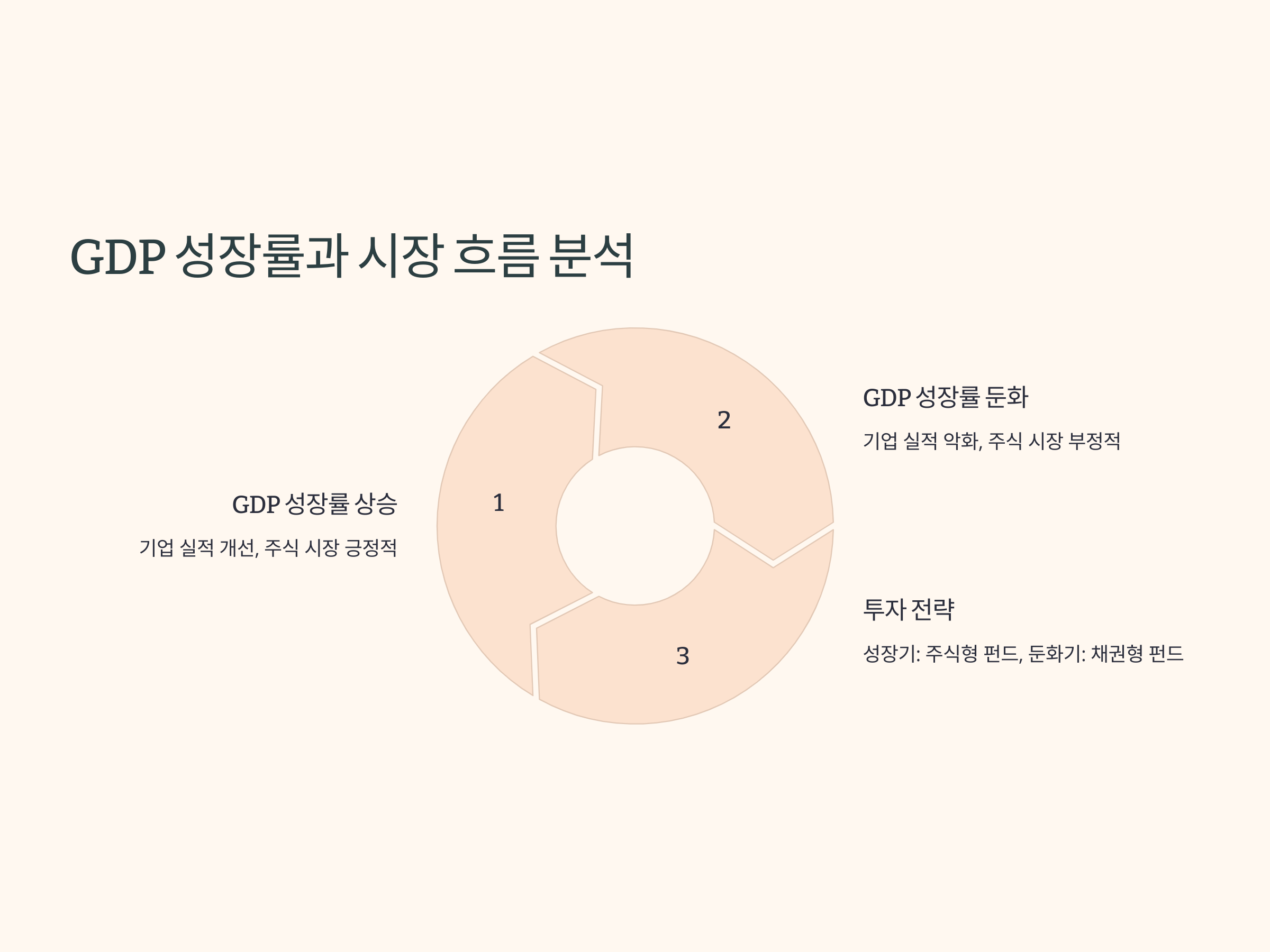 펀드 투자자는 GDP 성장률 전망을 고려하여 주식형 펀드와 채권형 펀드의 비중을 조정할 필요가 있습니다. 경제가 성장하는 국면에서는 주식형 펀드 비중을 높이는 것이 유리하고, 경기 둔화가 예상될 때는 채권형 펀드의 비중을 늘리는 전략이 효과적일 수 있습니다.