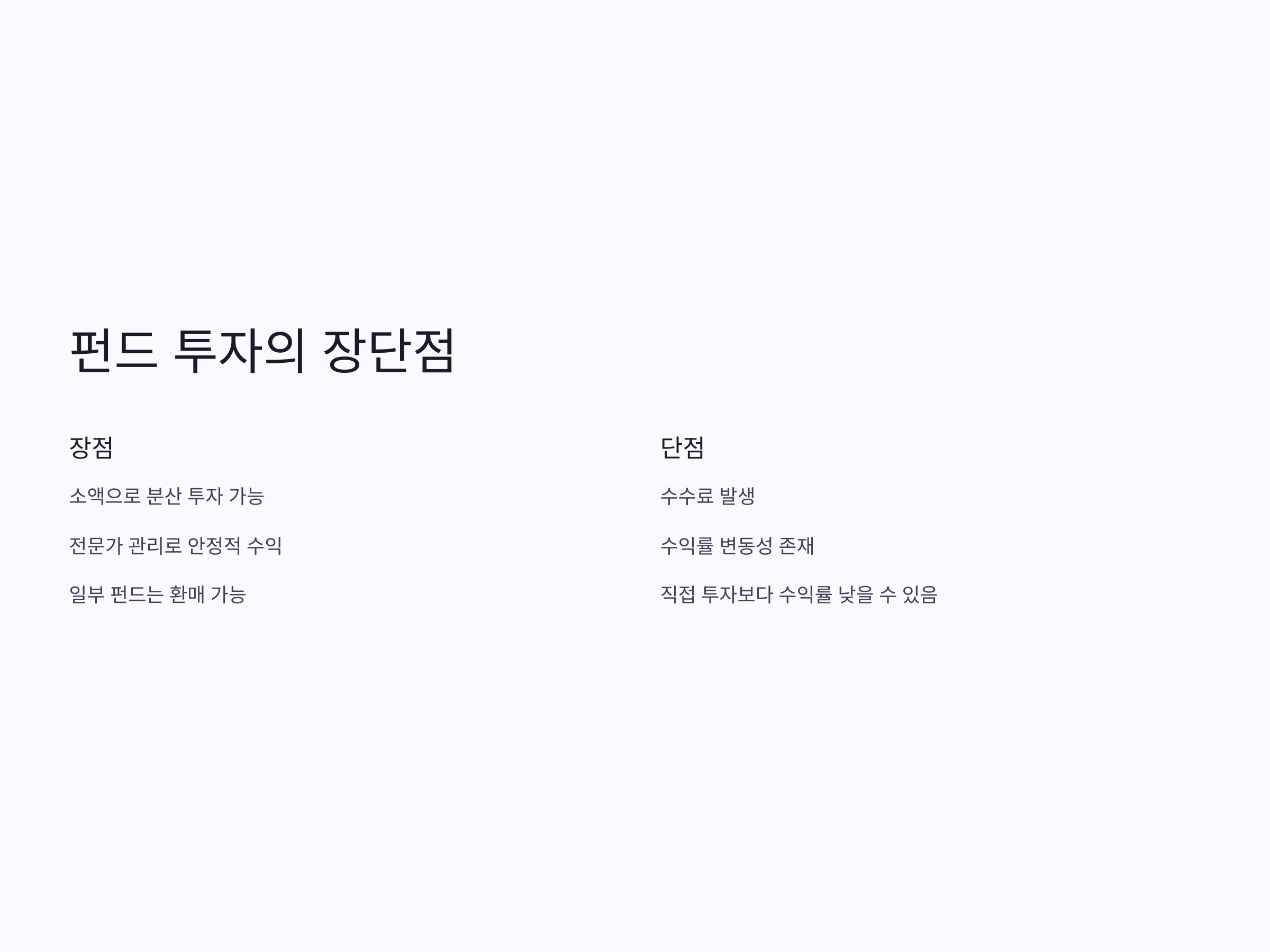 - 직접 투자보다 수익률이 낮을 수 있음