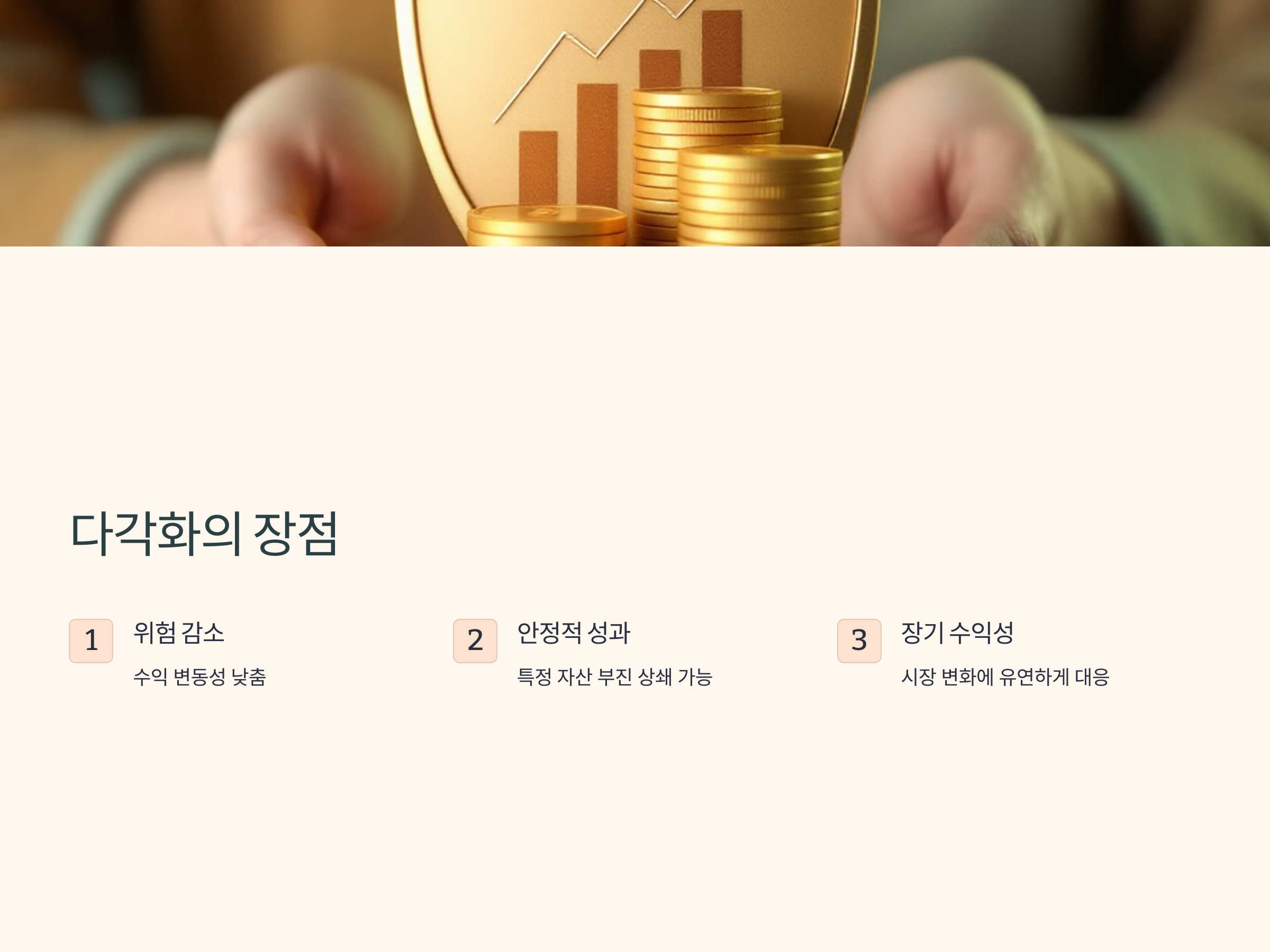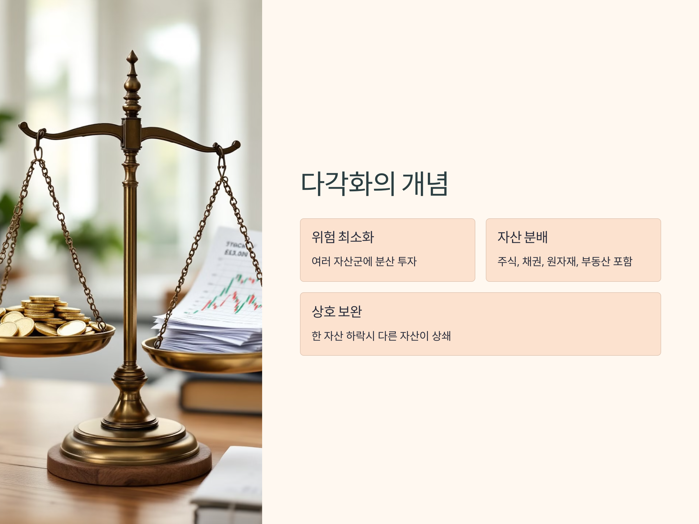 다각화가 중요한 이유는, 어떤 자산은 경제 성장기에는 잘 상승하지만, 불황기에는 하락할 수 있기 때문입니다. 예를 들어, 주식 시장이 부진할 때 채권 시장은 상대적으로 안정적일 수 있으며, 반대로 채권 시장이 침체되면 원자재가 상승하는 경우도 있습니다. 이를 통해 투자자는 특정 자산군의 영향을 덜 받으며 전체적인 포트폴리오의 안정성을 높일 수 있습니다.