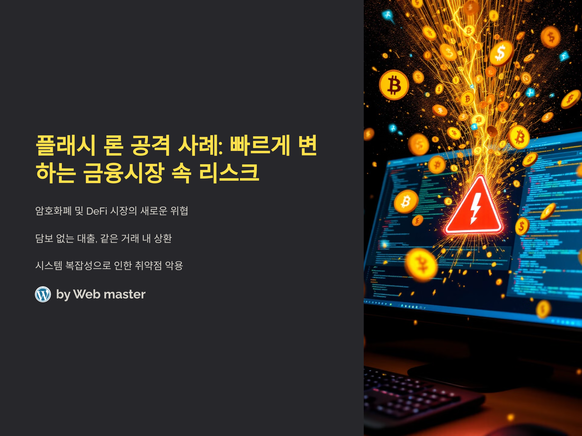 플래시 론(Flash Loan) 공격은 최근 암호화폐 및 DeFi(탈중앙화 금융) 시장에서 큰 주목을 받으며, 금융 시스템의 취약점을 노린 공격 방법으로 여러 사례들이 등장하고 있습니다. 플래시 론은 사용자가 담보 없이, 오직 스마트 계약을 통해 대출을 받고, 그 대출을 같은 거래 내에서 상환하는 방식입니다. 이는 특히 디파이(DeFi)와 스마트 계약 플랫폼에서 발생할 수 있는 독특한 형태의 공격입니다. 빠른 속도와 시스템의 복잡성으로 인해, 공격자들이 악용할 수 있는 가능성도 크며, 이로 인한 피해 사례들이 여러 번 발생하였습니다.