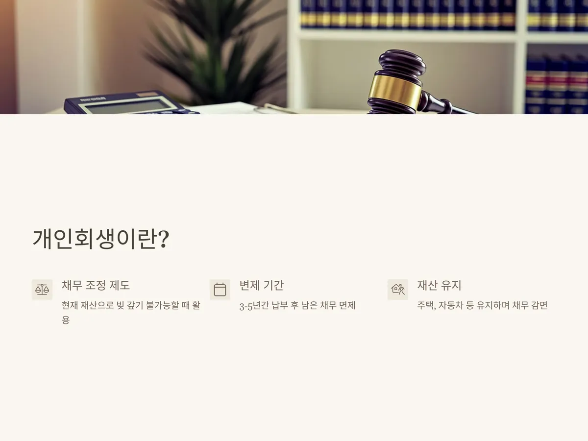 개인회생은 채무자가 현재의 재산이나 수입만으로는 모든 빚을 갚을 수 없을 때, 일정 기간 동안 합리적인 범위 내에서 변제한 후 남은 채무를 탕감받는 제도입니다. 이는 파산과 달리 일정한 소득이 있는 사람들을 대상으로 하며, 신용 회복을 통해 다시 사회경제활동을 할 수 있도록 돕는 제도라는 점에서 큰 의미가 있습니다.