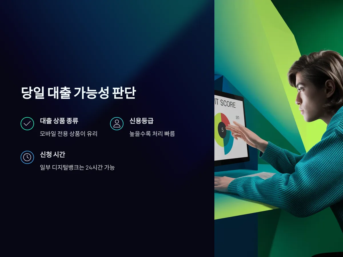 대출의 ‘당일 처리’가 가능한지는 신청 전 미리 판단할 수 있는 기준이 있습니다. 가장 중요한 요소는 대출 상품의 종류, 본인의 신용등급, 그리고 금융사의 자동화 시스템 적용 여부입니다. 일반적으로 모바일 전용 대출 상품이거나, 직장인 신용대출처럼 심사 기준이 간단한 상품일수록 당일 입금 가능성이 높습니다.