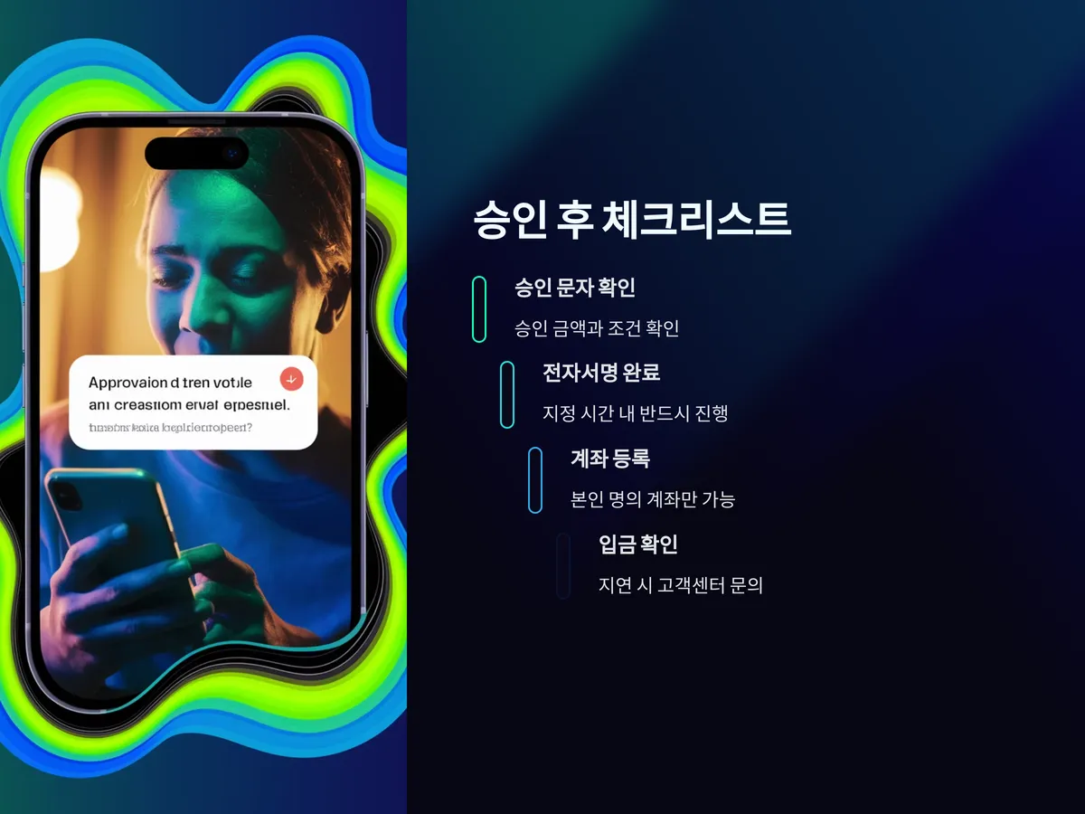 대출 승인 문자를 받았다고 바로 끝이 아닙니다. 이제는 입금까지의 마지막 절차인 ‘계약서 전자서명’과 ‘계좌 등록’ 단계가 남아있습니다. 전자서명은 모바일 앱 또는 SMS를 통해 진행되며, 일정 시간 내에 완료하지 않으면 대출이 자동으로 취소되는 경우도 있어 주의가 필요합니다.