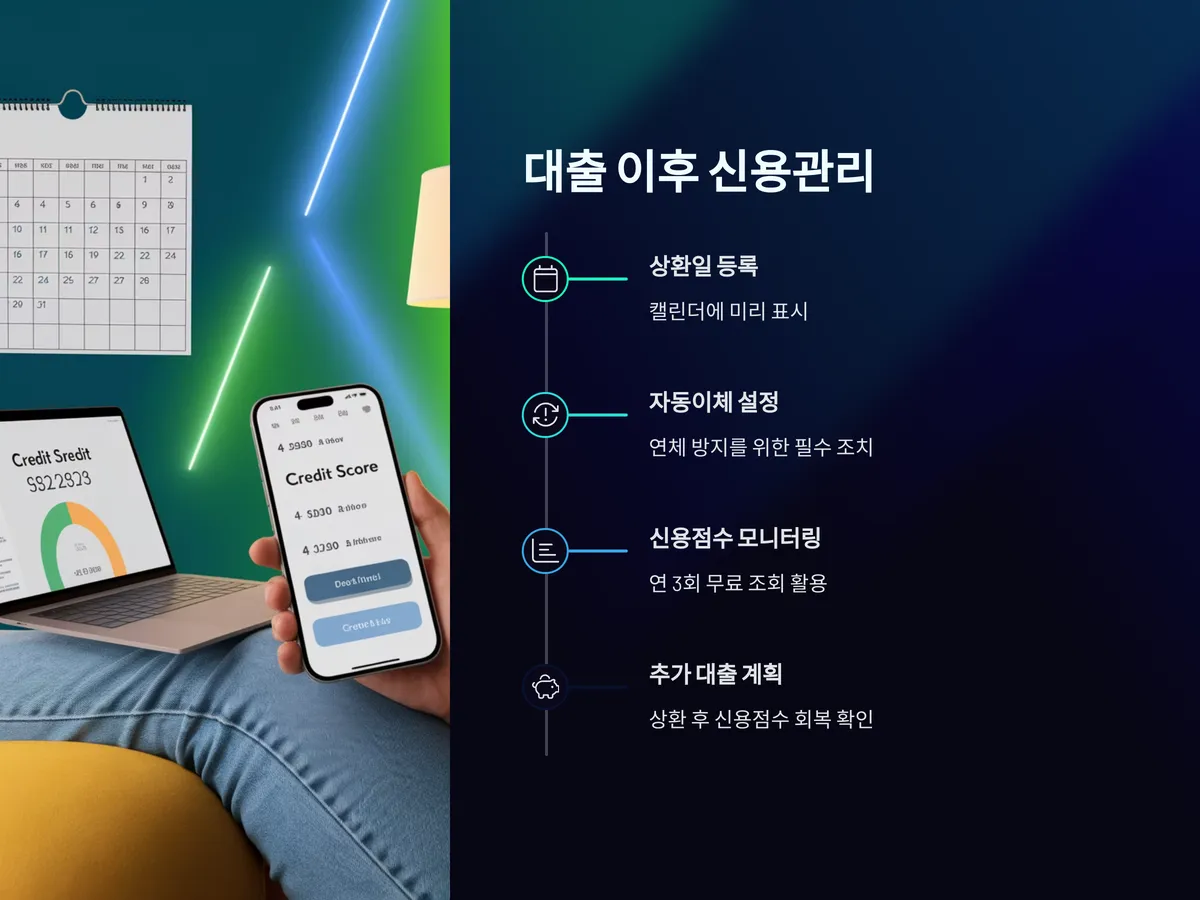대출을 받는 것도 중요하지만, 받은 후의 신용관리가 더 중요합니다. 특히 대출 직후에는 신용점수가 일시적으로 하락할 수 있으며, 이후 상환 패턴에 따라 회복 속도가 달라집니다. 당일 대출이라도 상환 계획을 명확히 세워야 추후 추가 대출이나 금융상품 이용 시 불이익을 받지 않습니다.