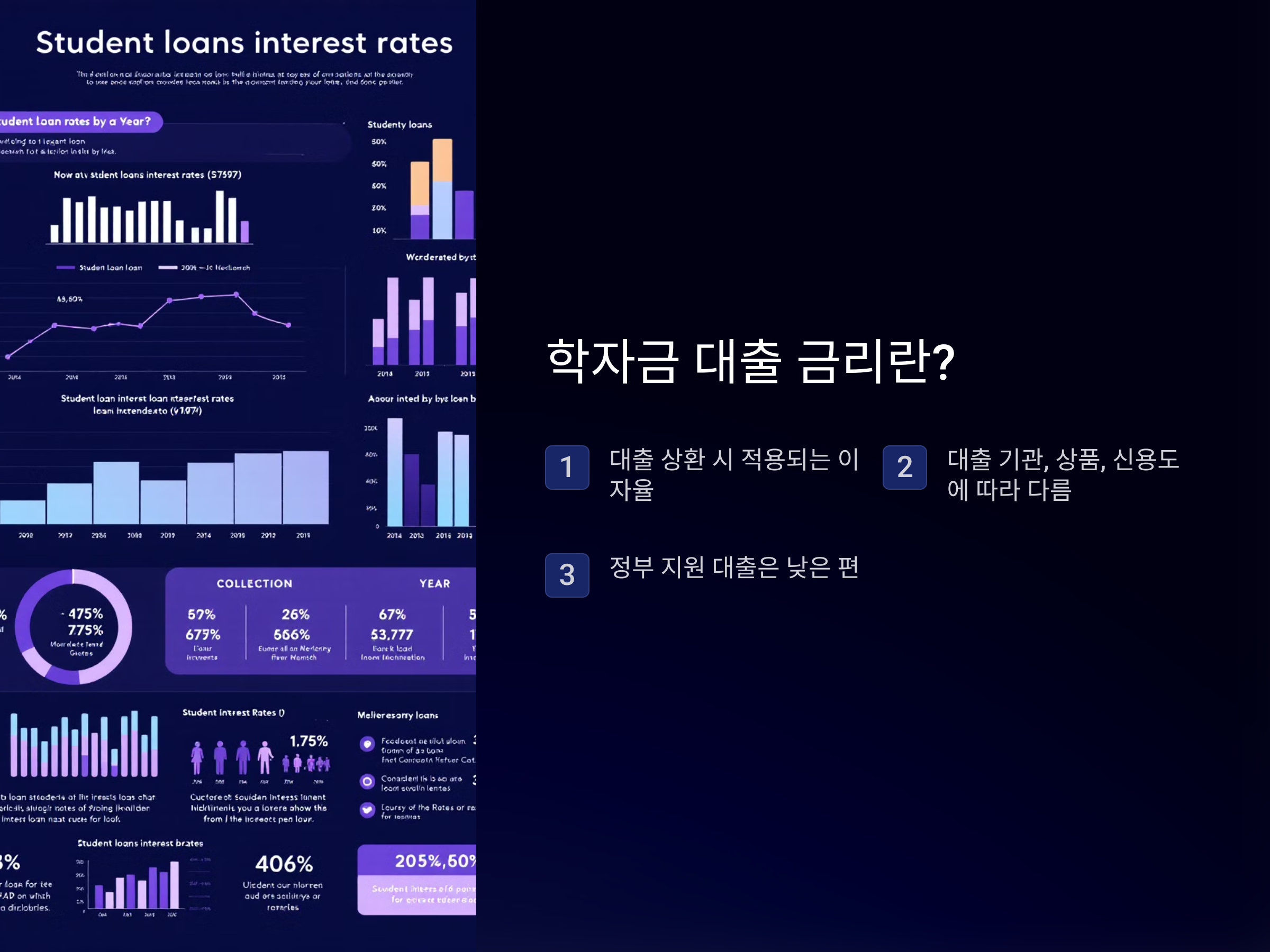 학자금 대출 금리는 대출을 받은 후 상환할 때 적용되는 이자율을 말합니다. 이 금리는 대출 기관과 대출 상품에 따라 다를 수 있으며, 대출을 받는 학생의 신용도나 상환 능력에 따라 금리가 조정되기도 합니다. 보통 정부가 지원하는 학자금 대출의 금리는 낮은 편이지만, 금리가 오를 경우 상환 기간 동안 부담이 커질 수 있습니다.