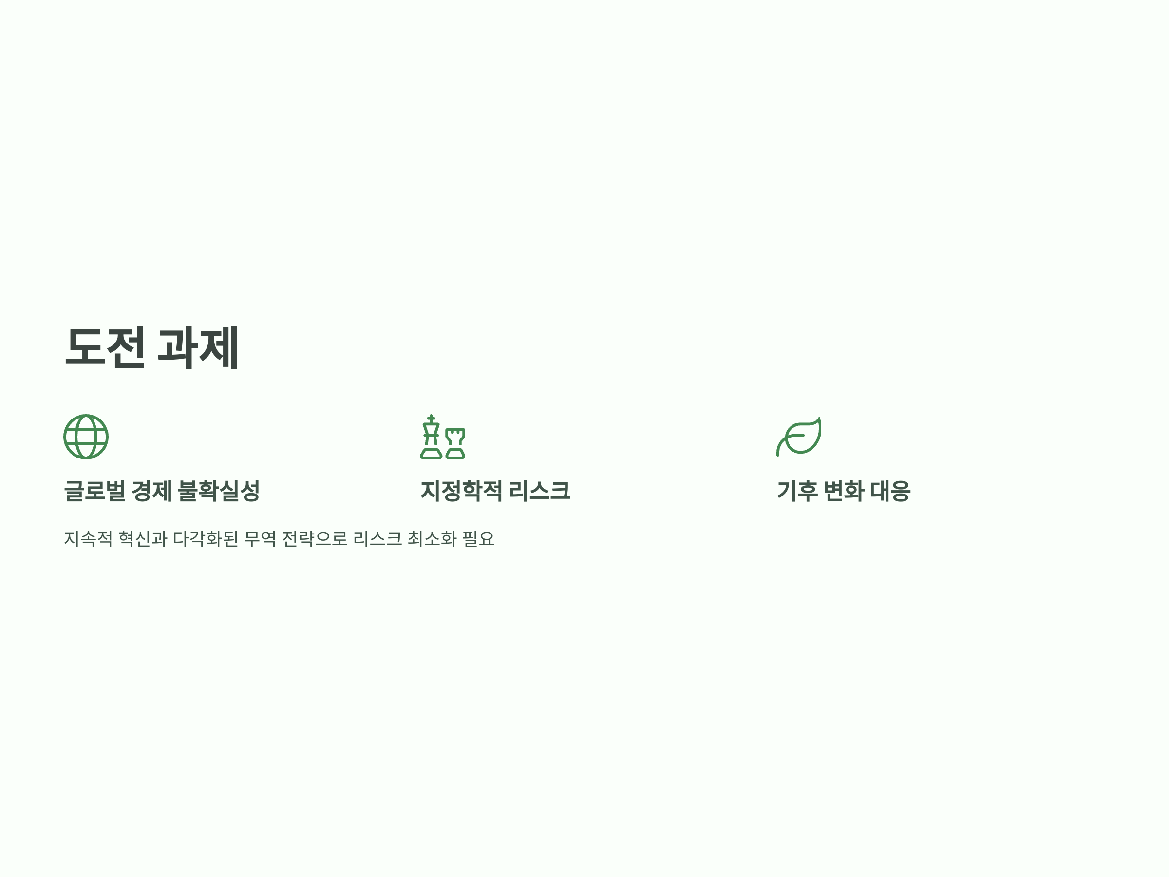 - 글로벌 경제 불확실성은 한국 수출에 리스크를 주지만, 디지털 경제와 친환경 기술을 통한 다각화가 기회를 만들어갈 것입니다.