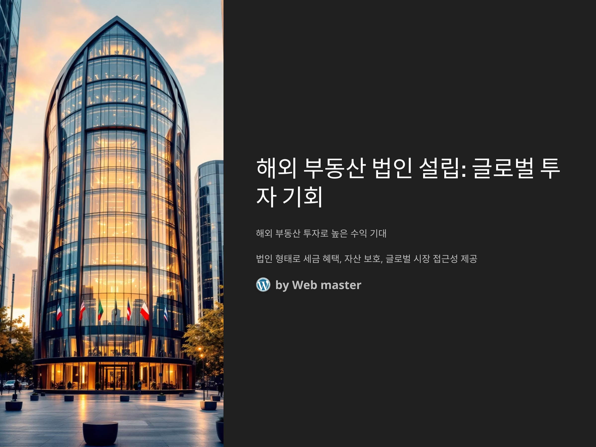 해외 부동산 투자는 높은 수익을 기대할 수 있는 좋은 방법입니다. 특히, 법인 형태로 설립된 부동산 투자 회사는 여러 가지 이점을 제공합니다. 세금 혜택, 자산 보호, 그리고 다양한 글로벌 시장에 대한 접근성까지 다양한 이유로 해외 부동산 법인 설립을 고려하는 사람들이 늘어나고 있습니다. 그렇다면 해외 부동산 법인 설립을 위한 핵심 절차와 이점, 그리고 주의해야 할 사항들은 무엇일까요?