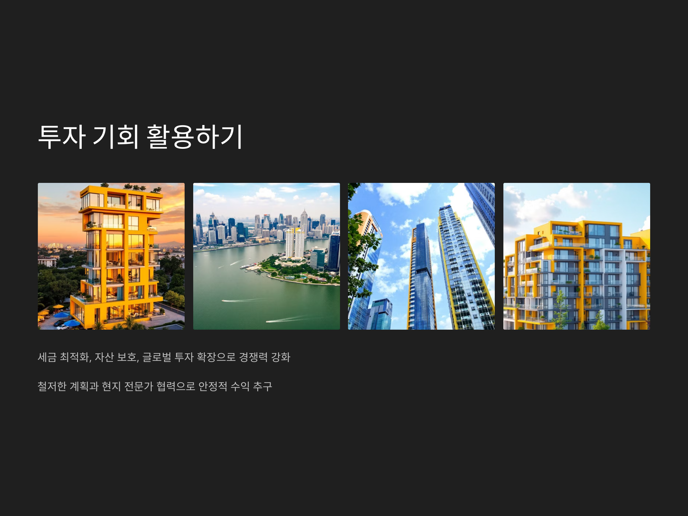 해외 부동산 법인 설립은 매우 유리한 투자 전략이 될 수 있습니다. 법인 설립을 통해 세금 최적화, 자산 보호, 글로벌 투자 확장의 기회를 얻을 수 있으며, 부동산 시장에서 경쟁력을 높일 수 있습니다. 그러나 해외 법인 설립을 계획할 때는 국가별 규제, 세법, 그리고 관리 및 운영에 대한 충분한 이해가 필요합니다.