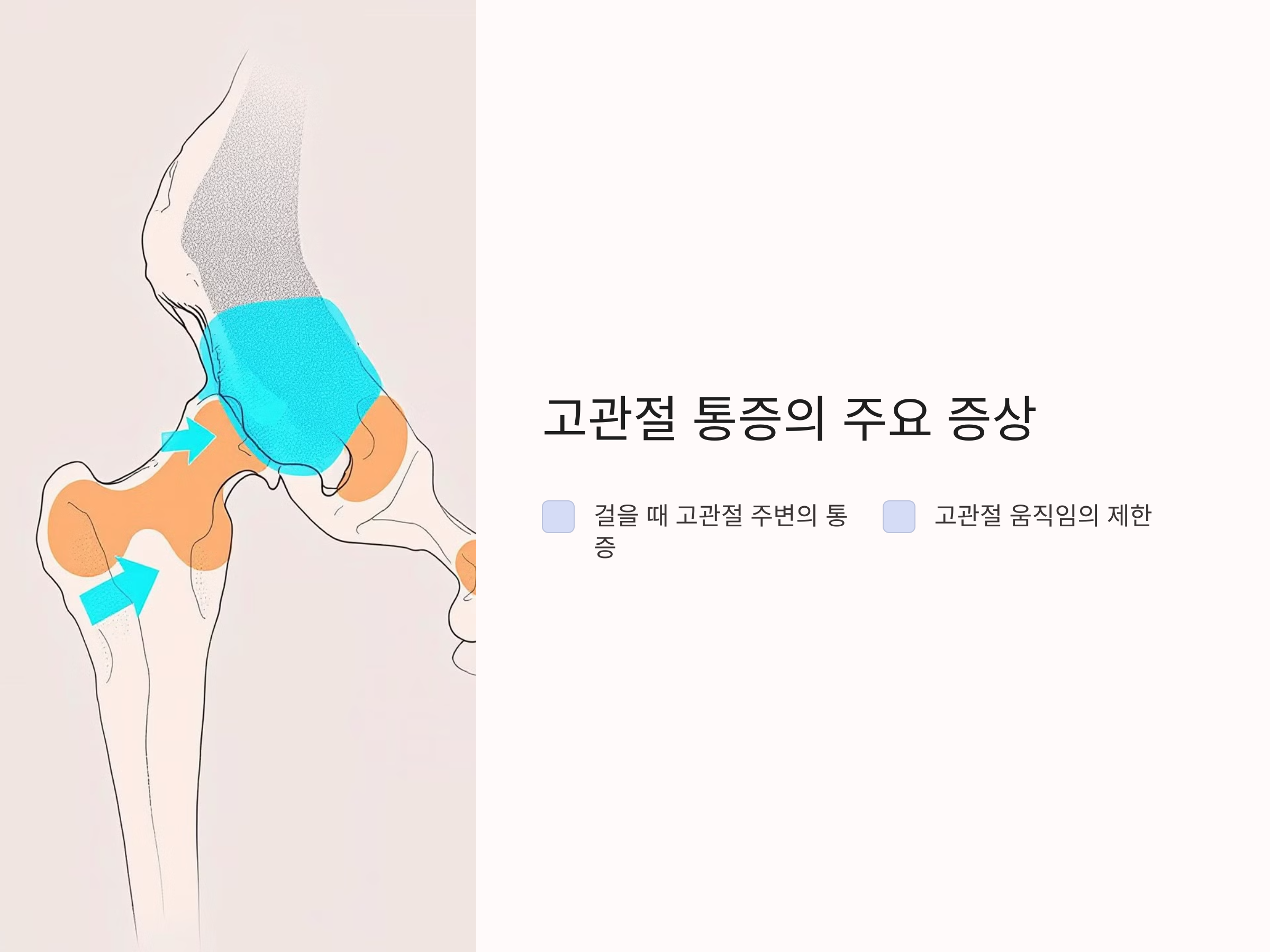- 고관절 관절염: 연골 손상으로 인한 염증