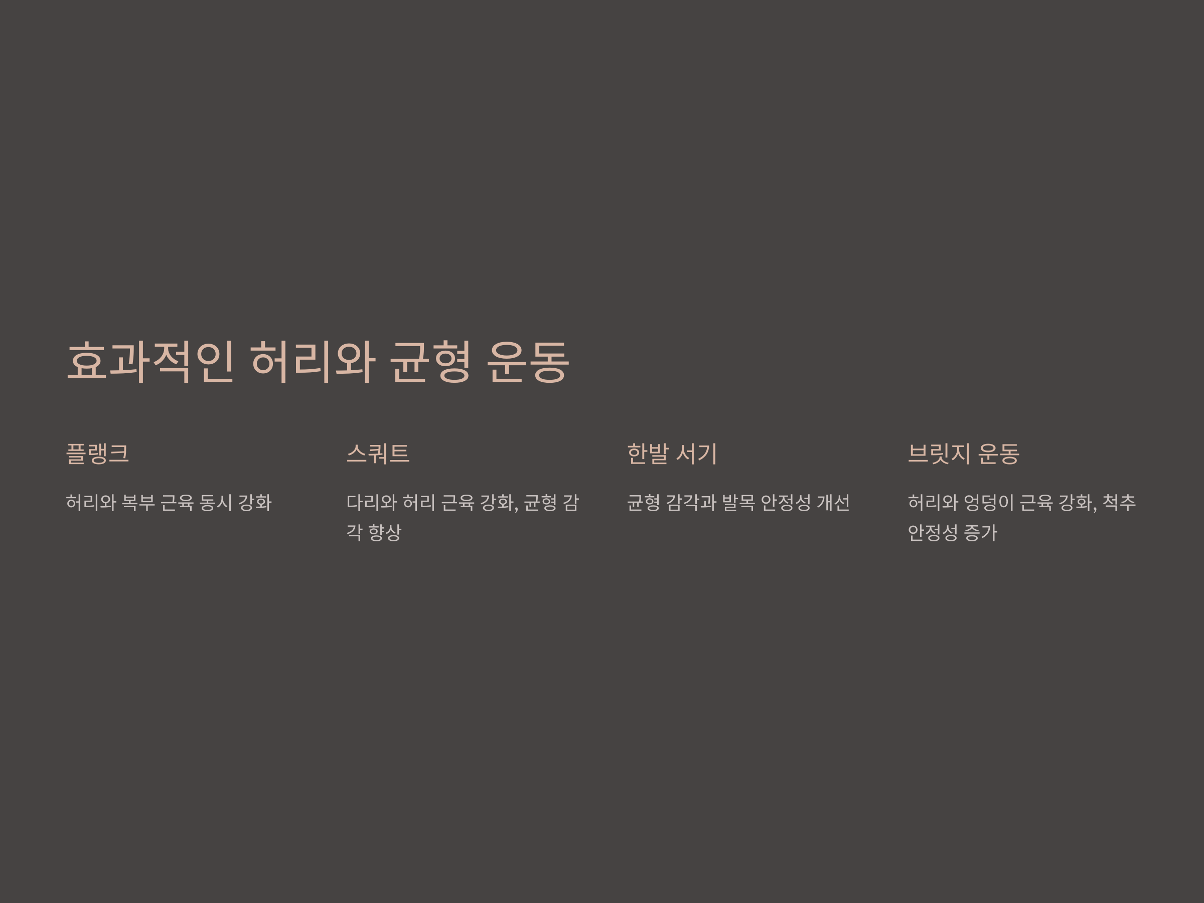허리 건강을 지키고 균형 감각을 개선하려면 다음 운동들을 실천해 보세요.