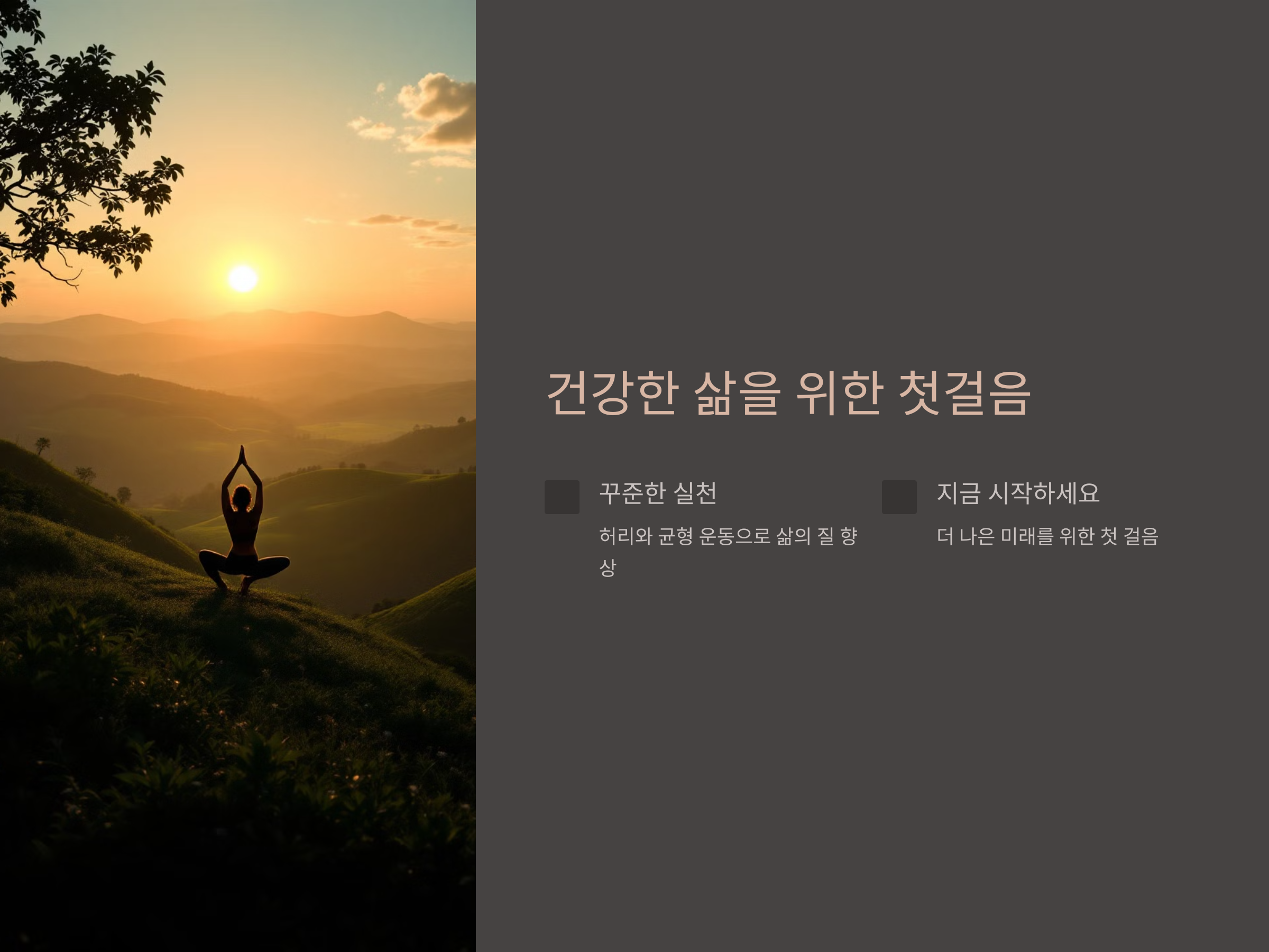 허리와 균형 운동은 단순히 건강을 유지하는 것을 넘어 삶의 질을 높이는 데 중요한 역할을 합니다. 꾸준한 실천과 적절한 생활 습관을 통해 허리 건강을 관리하면 더 나은 미래를 기대할 수 있습니다. 지금 바로 시작해 보세요!