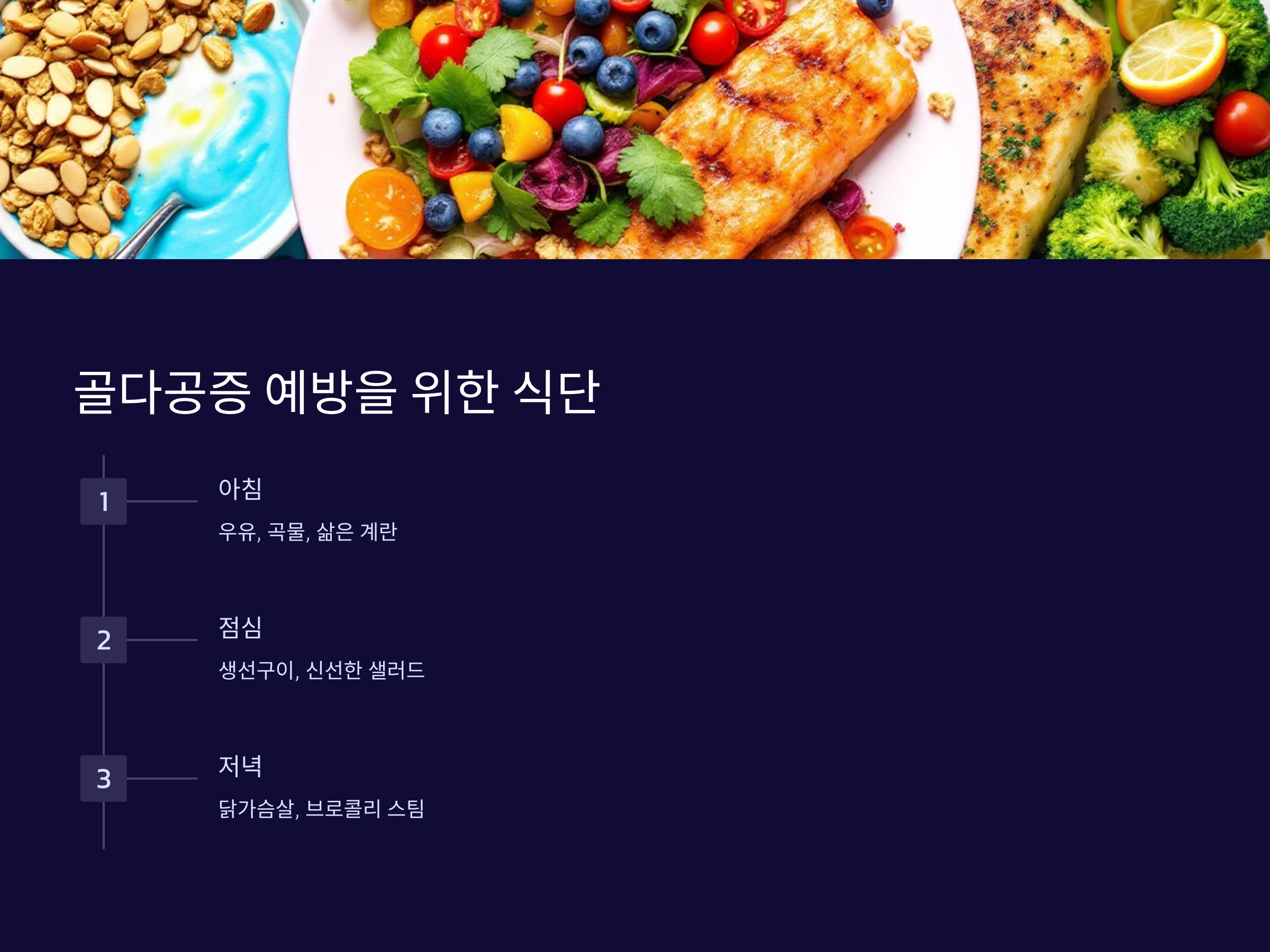 식단에 우유, 생선, 견과류, 신선한 채소 등을 포함해 균형 잡힌 영양을 유지하세요.