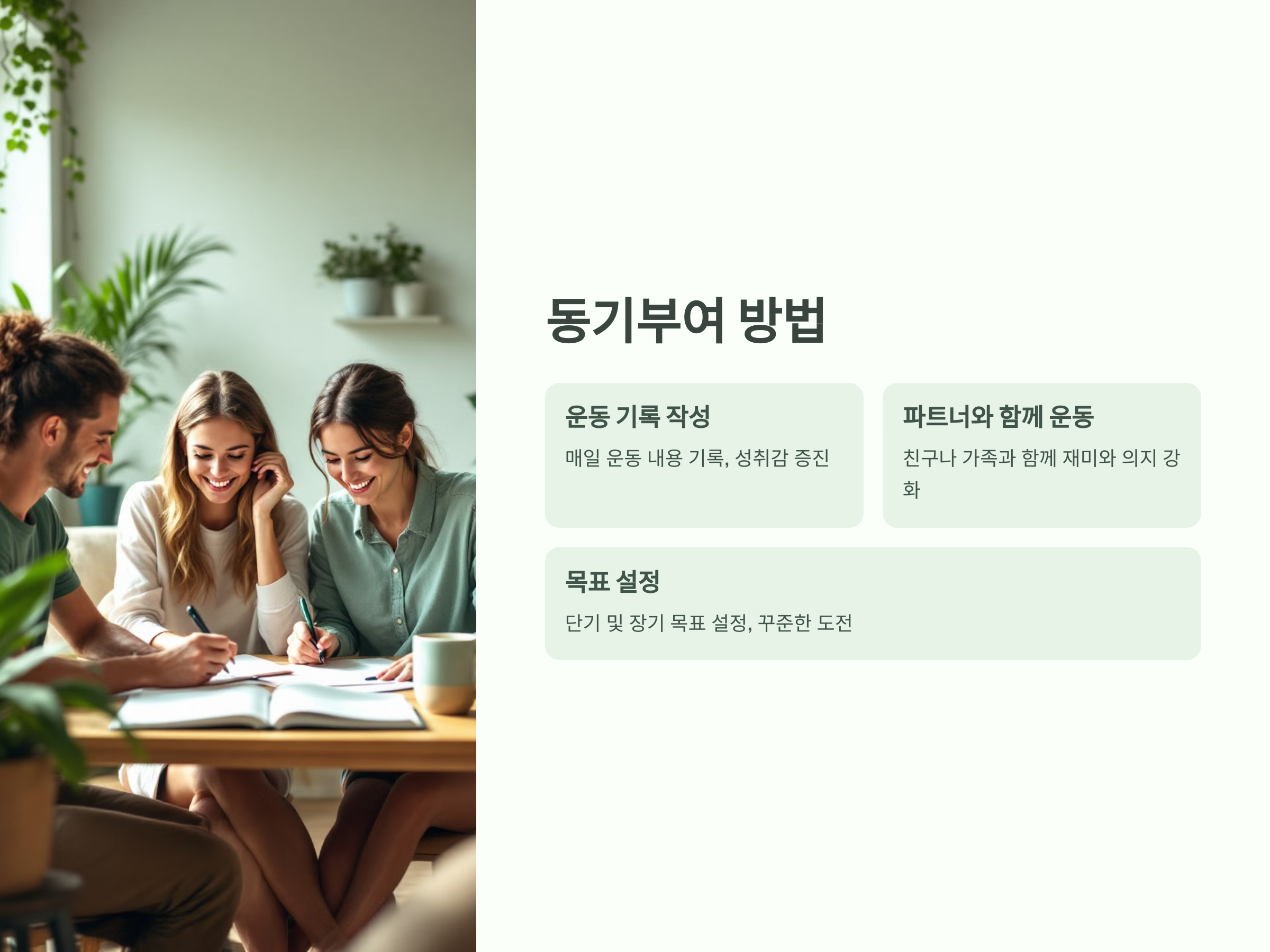 - 파트너와 함께 운동: 친구나 가족과 함께하면 재미와 의지가 더해집니다.