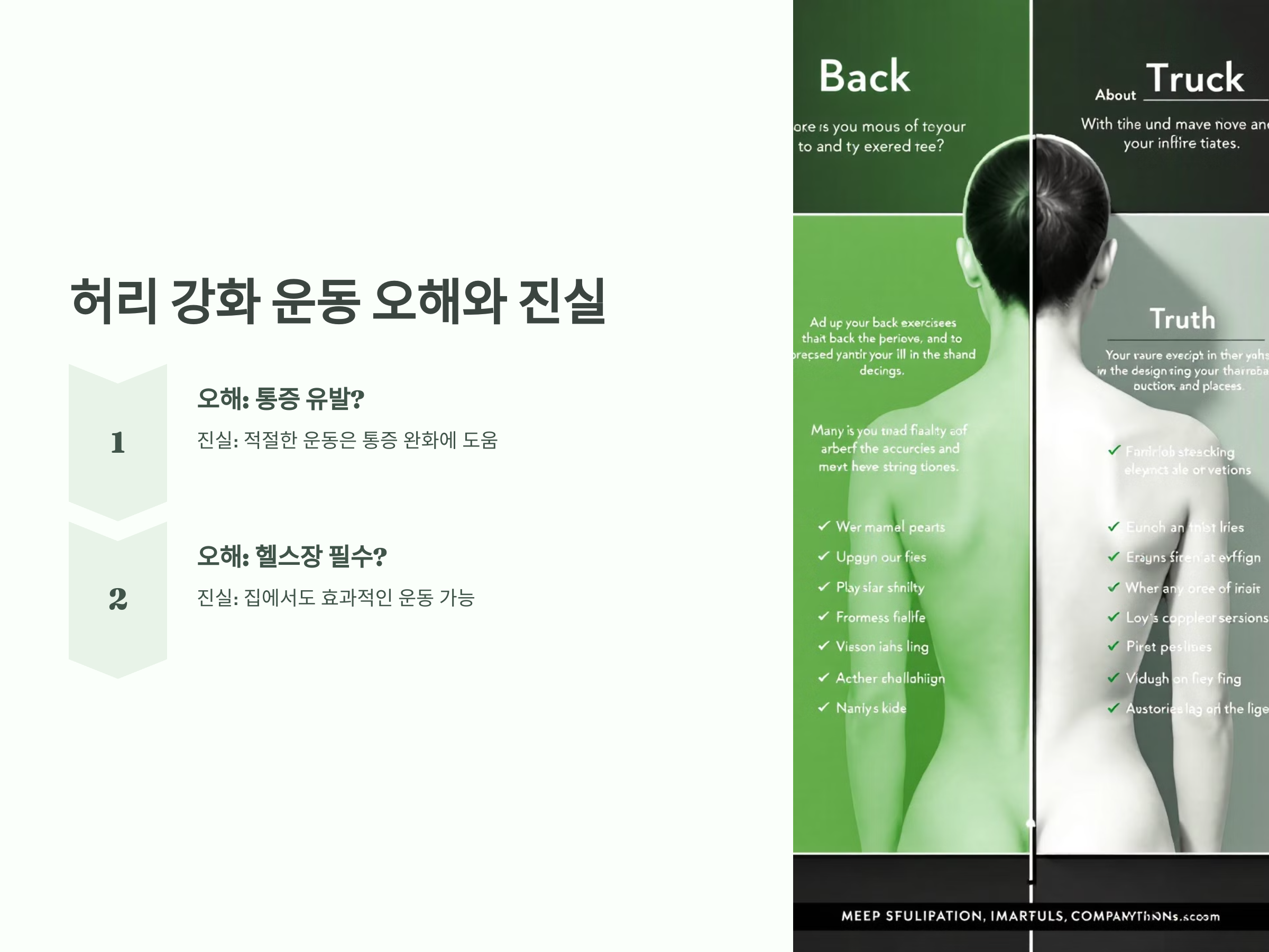 - 진실: 적절한 운동은 통증 완화에 도움을 줍니다.