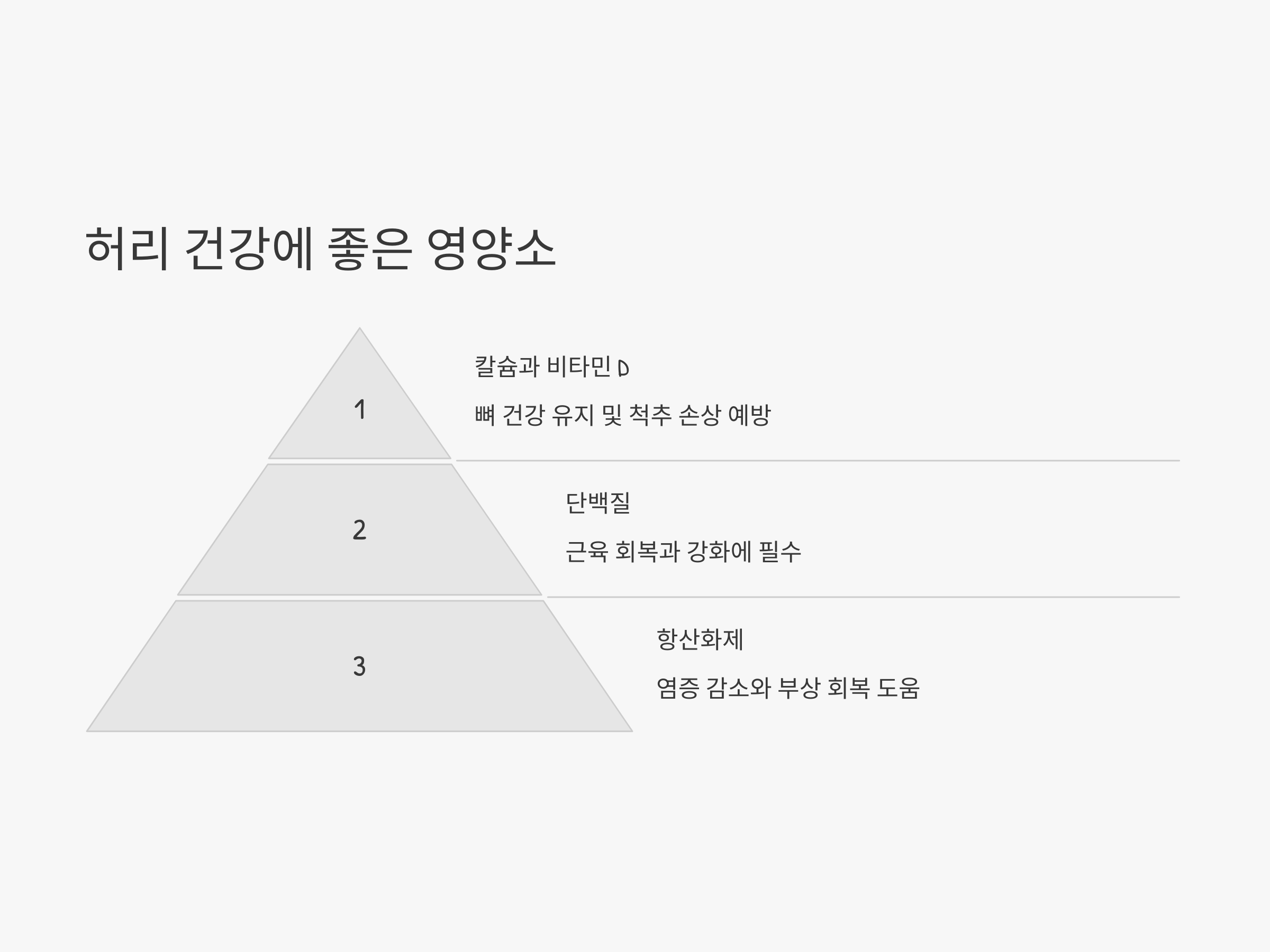 허리 건강을 유지하려면 운동뿐만 아니라 영양소 섭취와 식습관도 중요합니다.