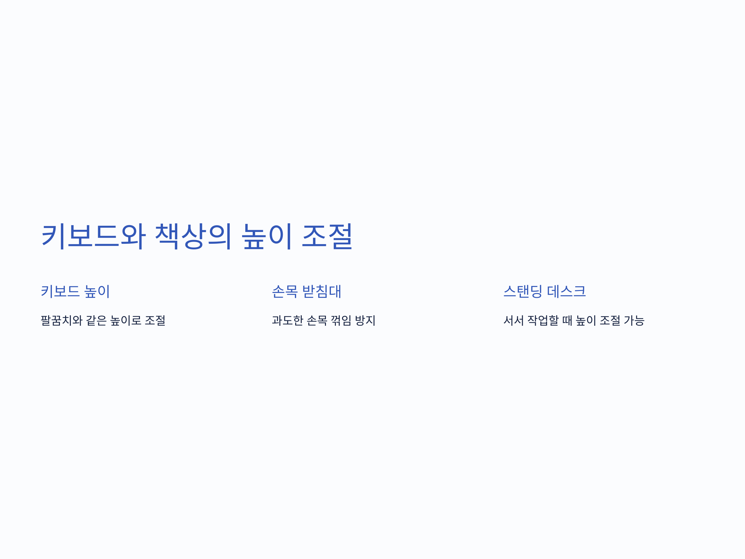 책상 배치와 높이 조정