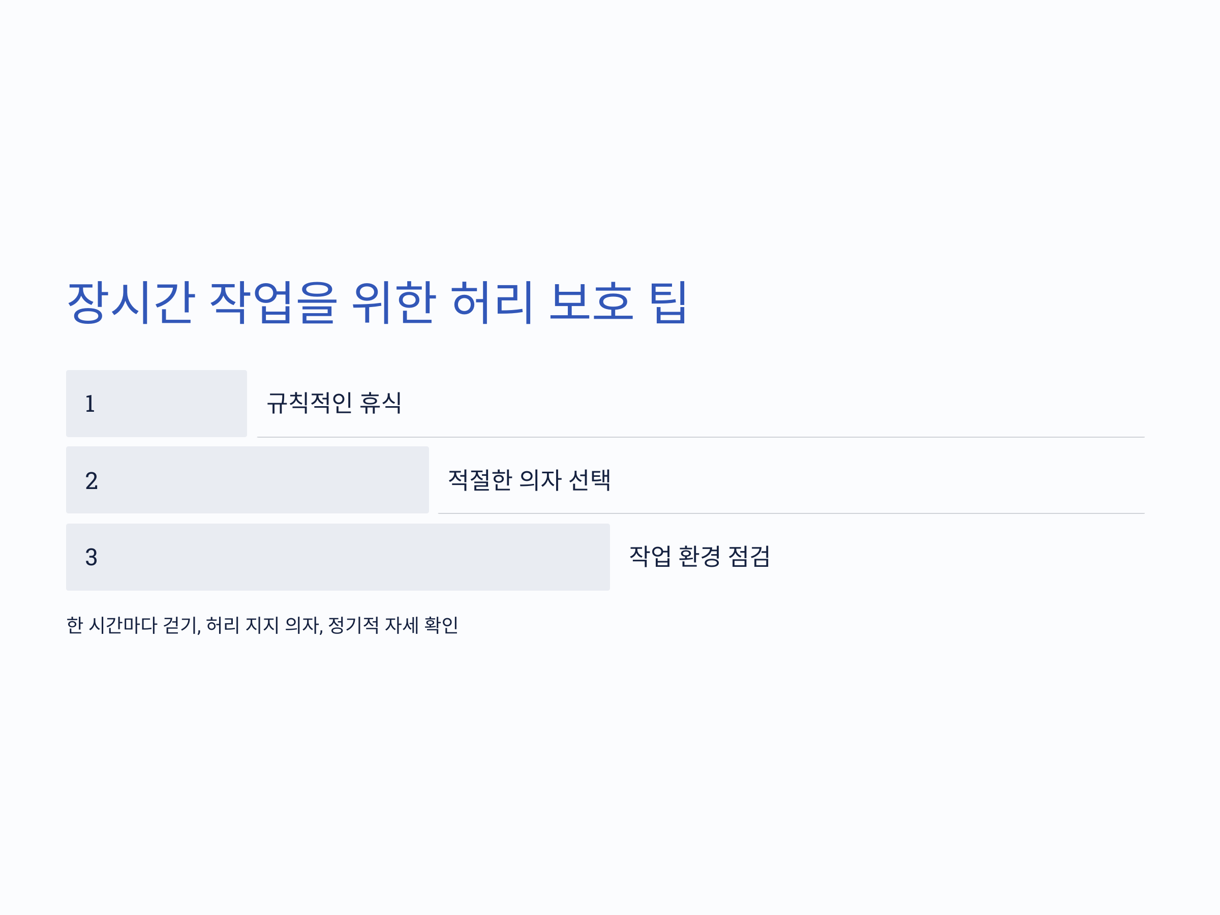 - 허리 지지대 사용: 요추 곡선을 자연스럽게 유지하도록 도움을 줍니다.