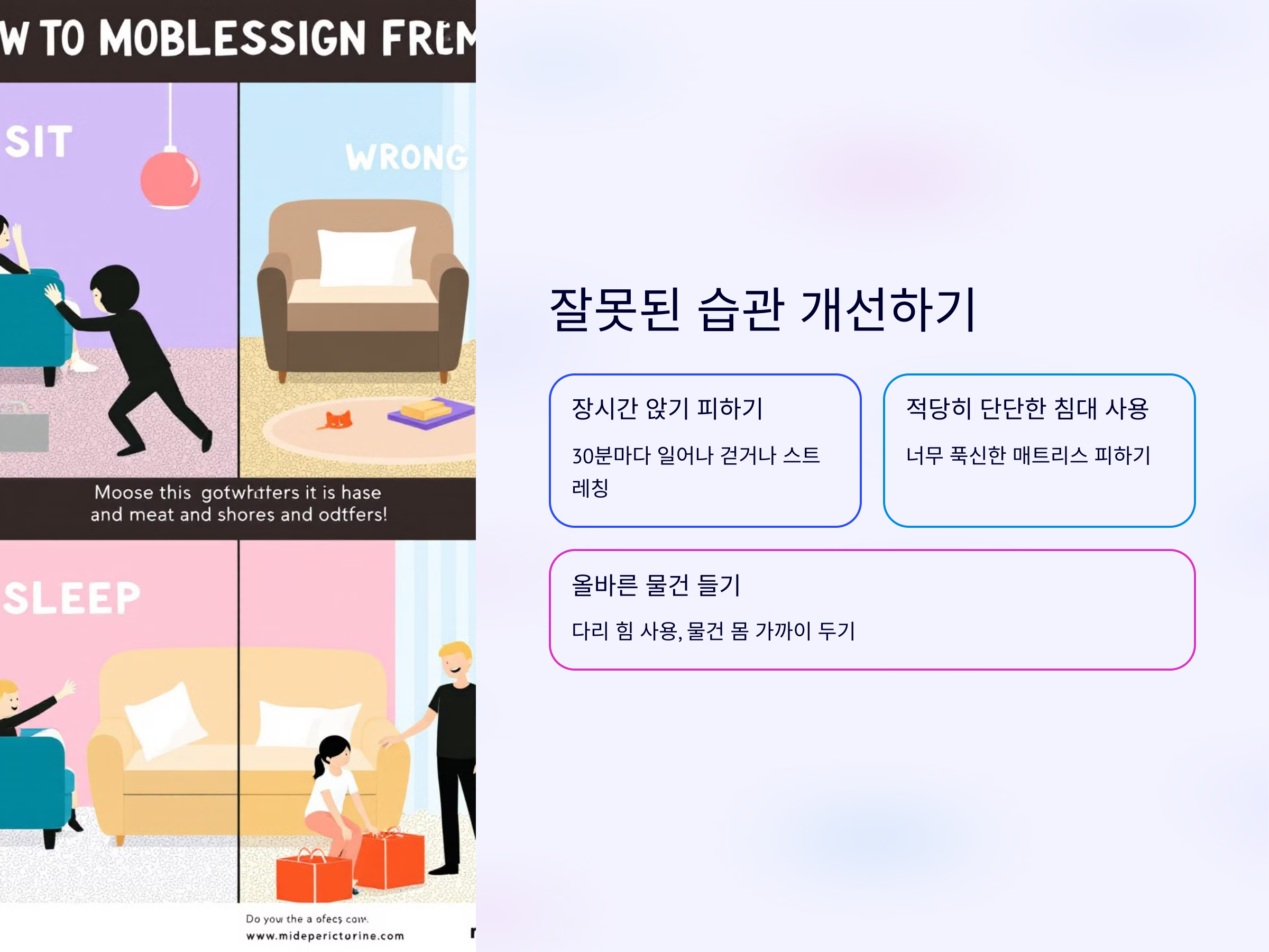 허리 근육통을 예방하고 완화하려면 생활 속에서 작은 변화부터 시작해야 합니다.