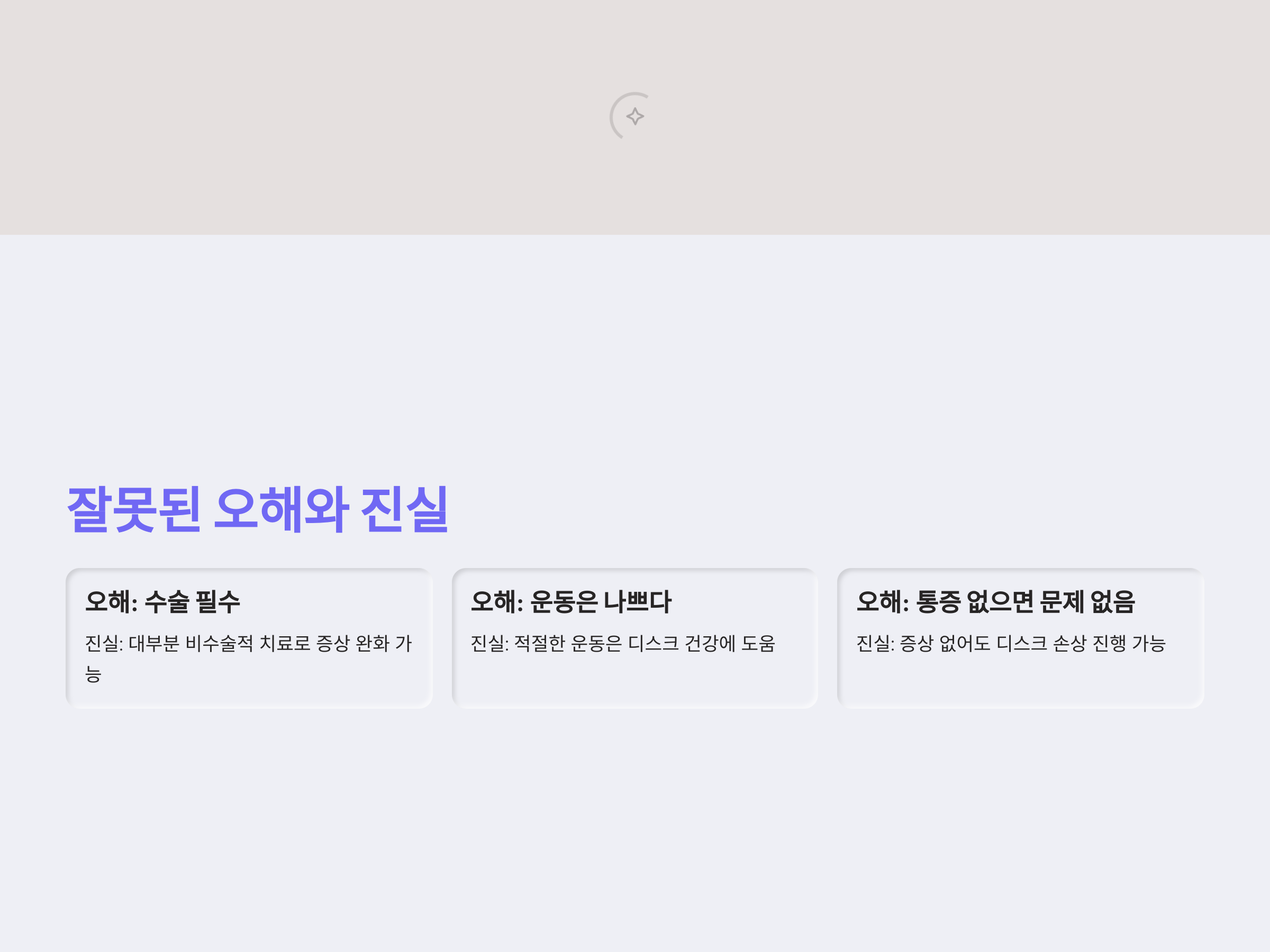 허리 디스크에 대한 오해가 치료를 지연시키는 경우가 많습니다. 올바른 정보를 통해 질환에 대해 정확히 이해해보세요.