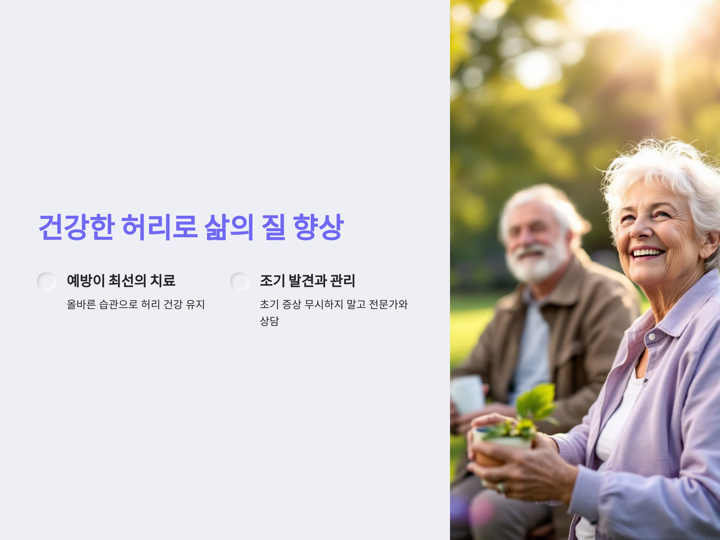 디스크 탈출증을 경험했더라도 꾸준한 관리와 올바른 치료로 일상 생활로 복귀할 수 있습니다. 건강한 허리를 유지하기 위한 주요 팁을 알아보세요.