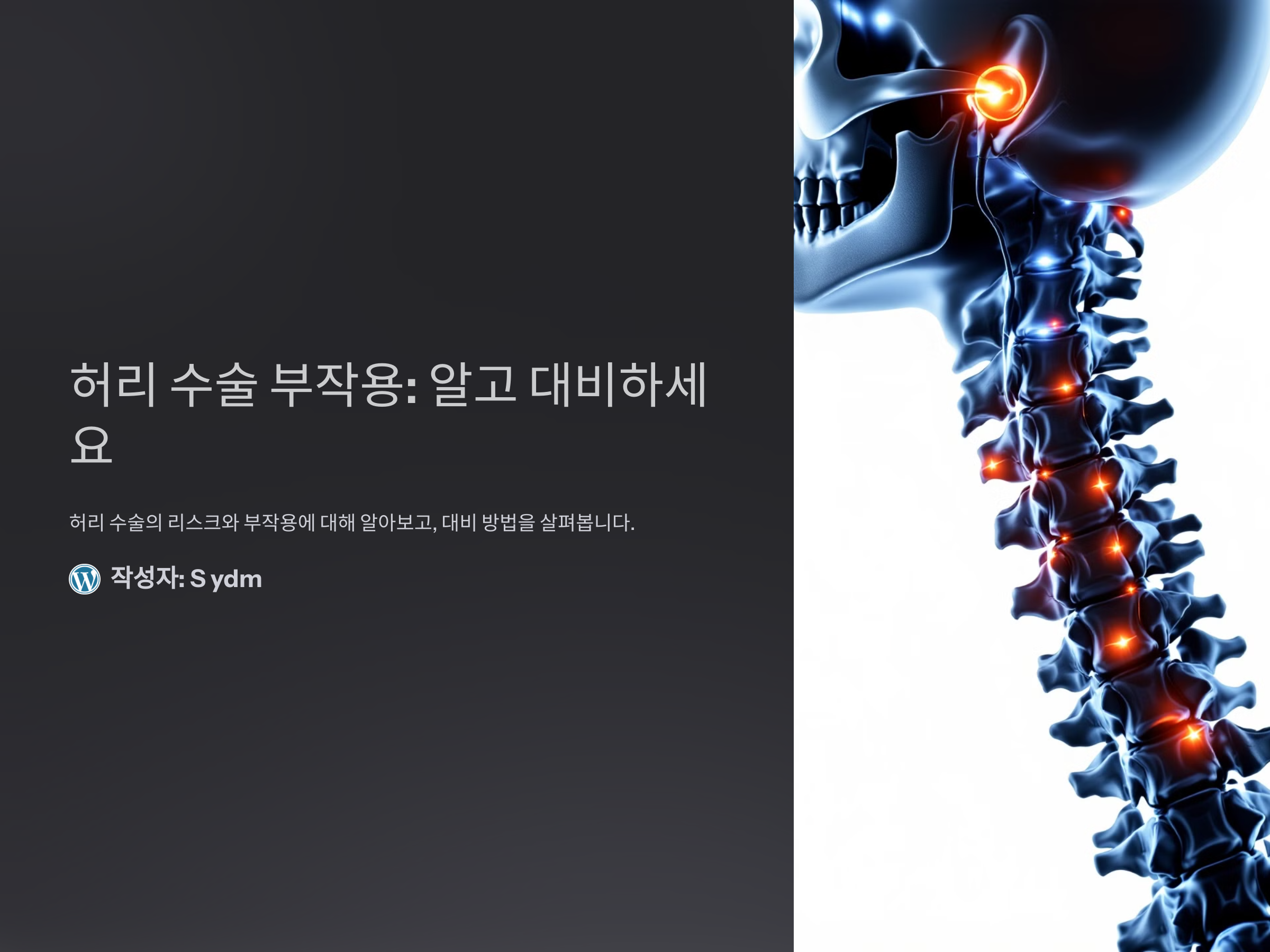허리 수술은 요통과 디스크 문제를 해결할 수 있는 효과적인 치료법이지만, 부작용 위험이 존재합니다. 수술 전 충분히 검토하고, 재활 치료와 생활 관리를 철저히 하여 회복 속도를 높이세요. 최신 기술을 적극 활용하고, 전문가와 상담을 통해 최선의 선택을 하시길 바랍니다
