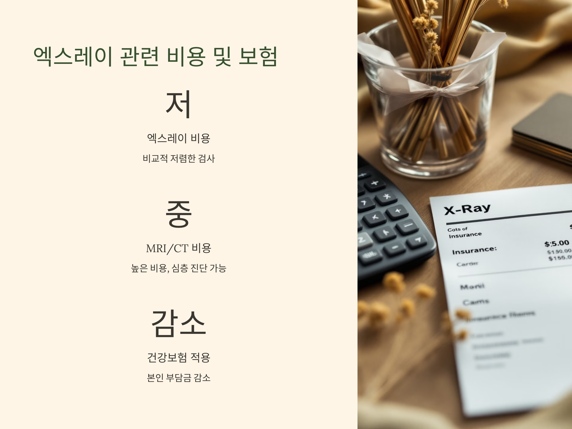 - CT: 뼈와 연부 조직을 더 정밀하게 분석할 수 있는 검사로, 엑스레이와 MRI의 중간 정도의 역할을 합니다.