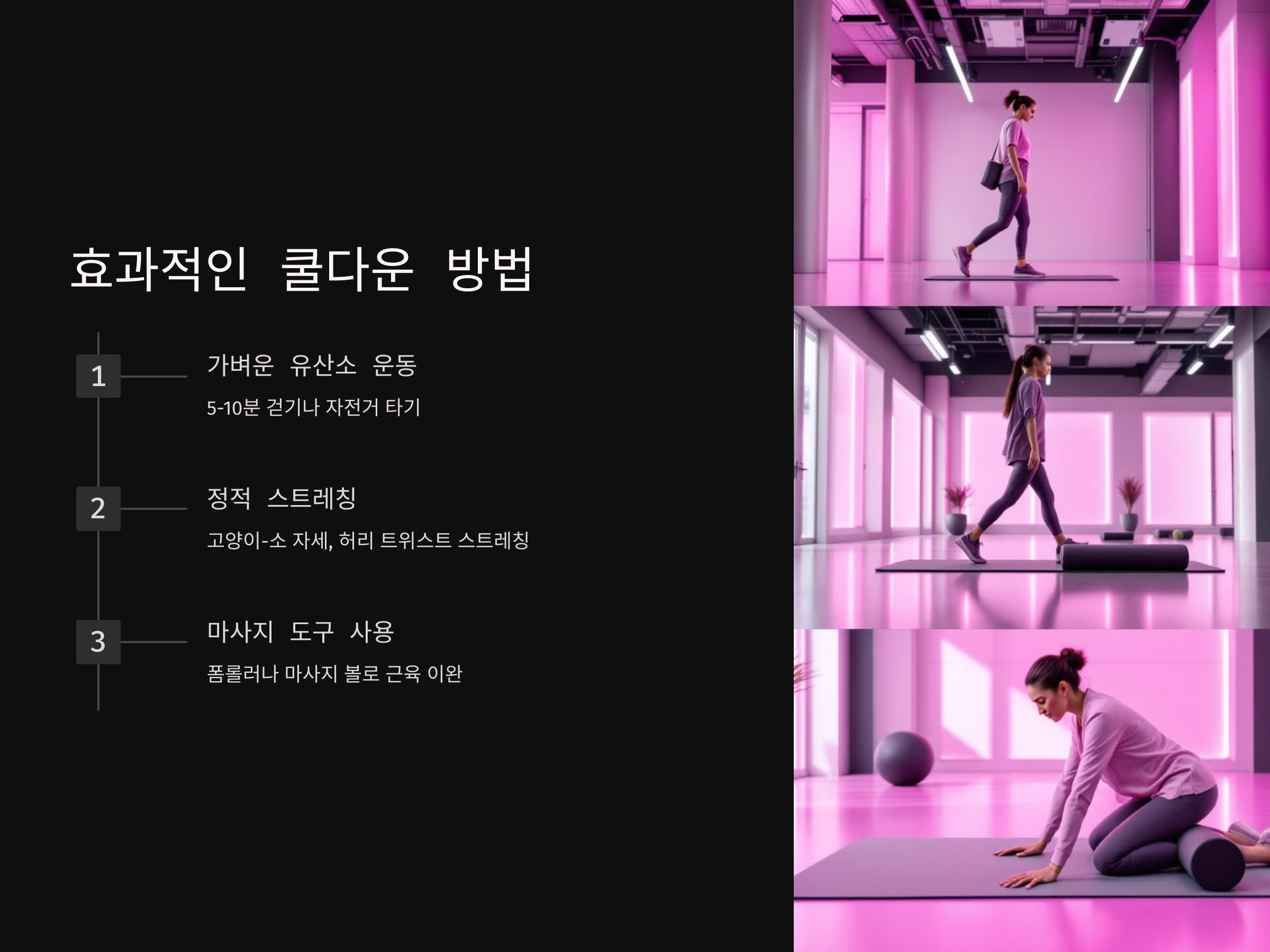 허리 운동 후 적용할 수 있는 쿨다운 방법을 단계별로 알아보겠습니다.