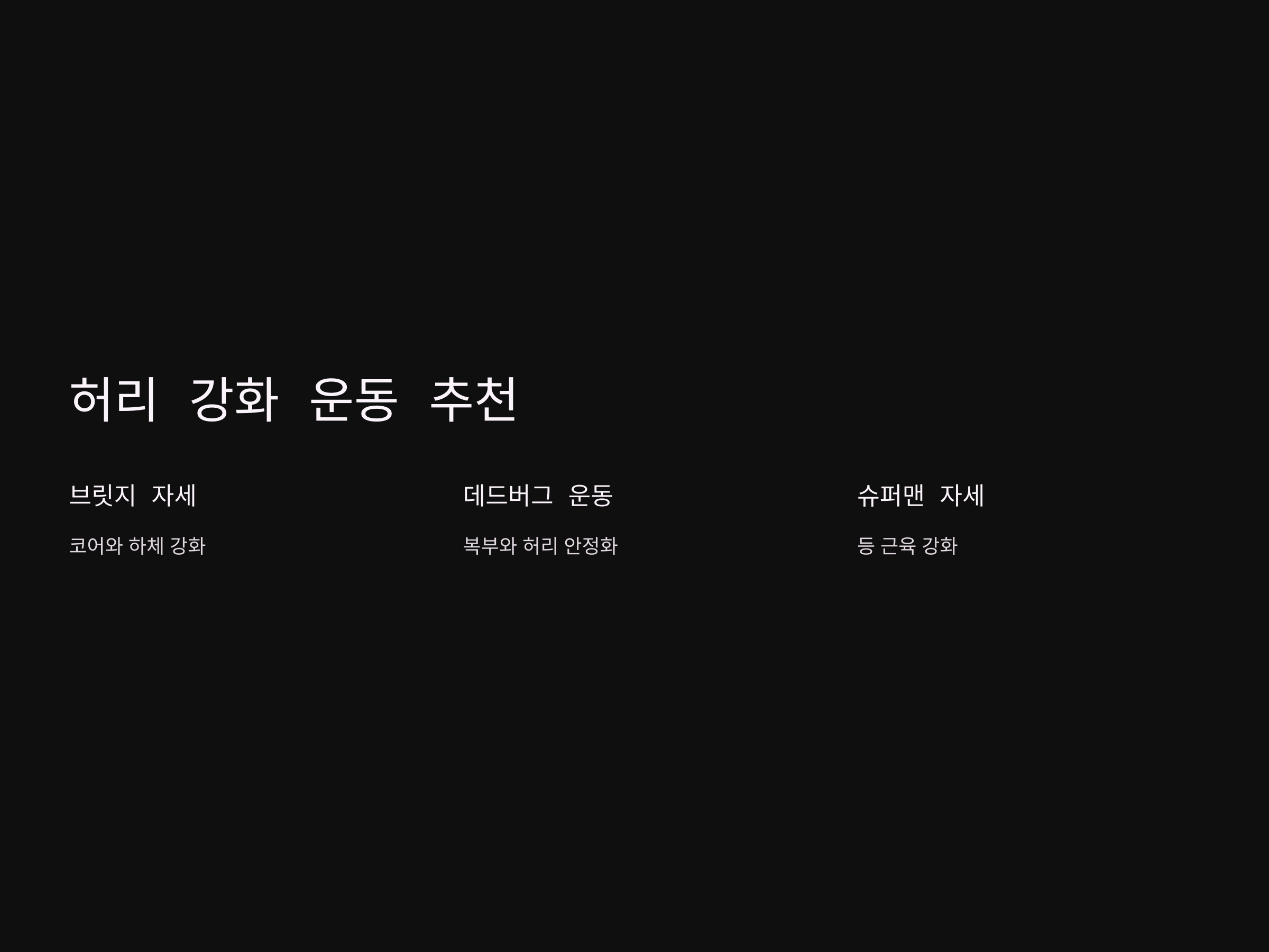 운동 후 쿨다운 외에도 다음을 병행하면 허리 건강을 유지하는 데 큰 도움이 됩니다: