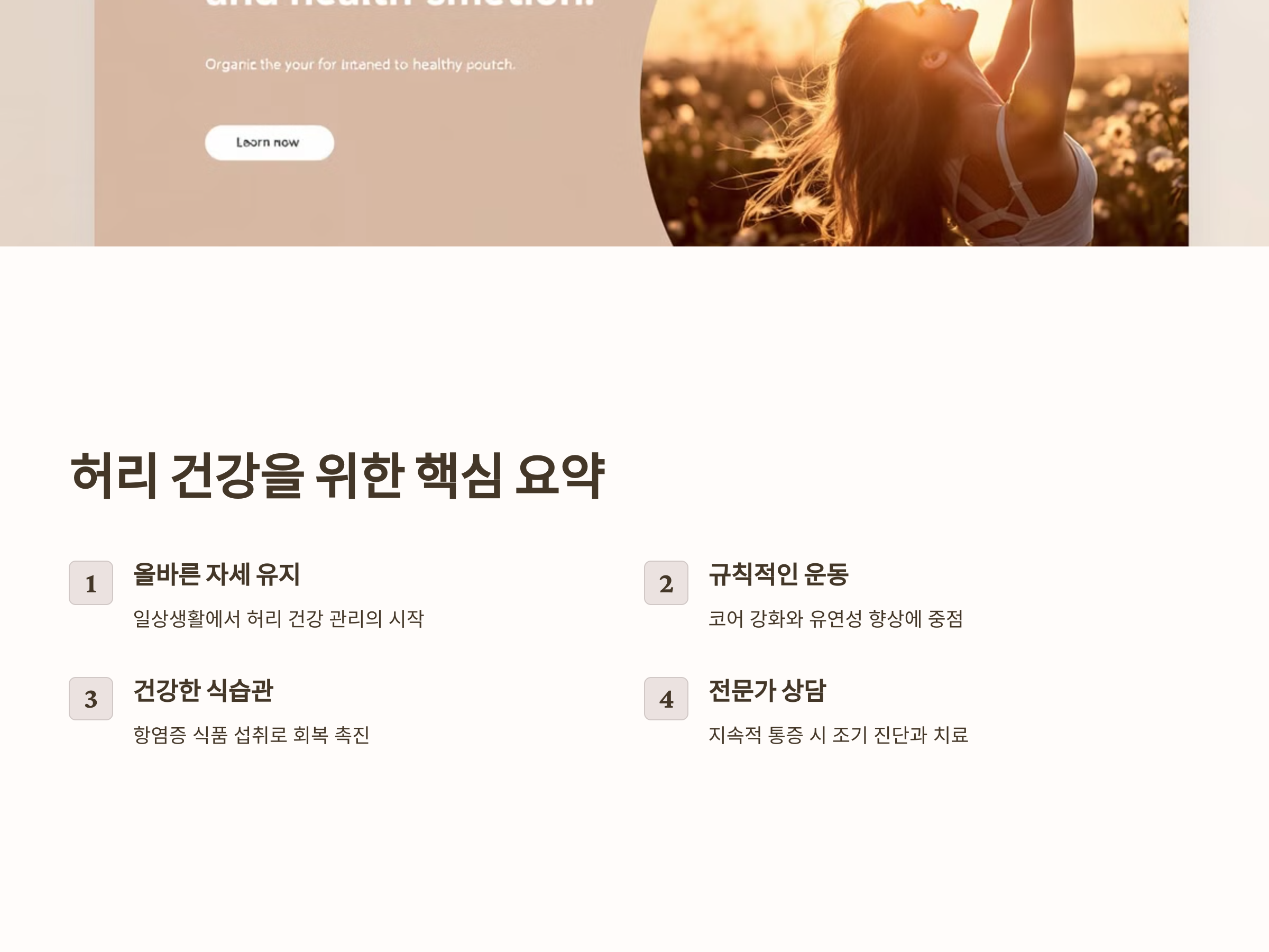 - 허리 주변 근육(코어)을 강화하는 것이 핵심입니다.