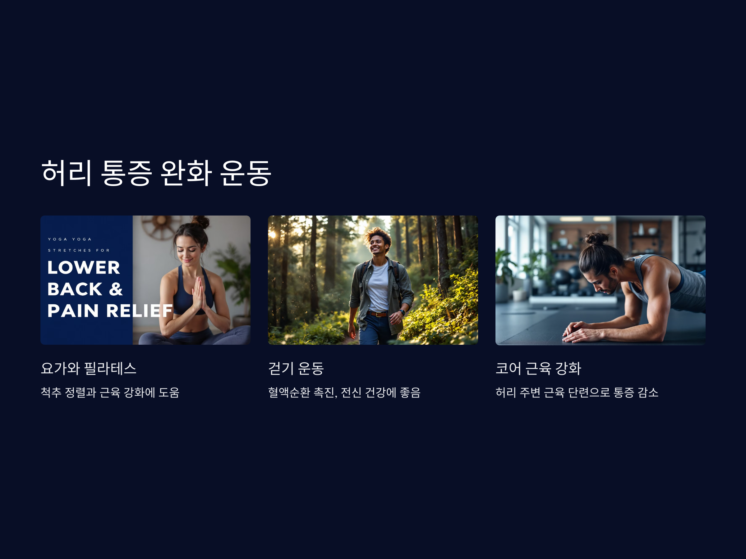 - 코어 근육 강화 운동: 허리 주변 근육을 단련하면 통증을 줄이고 척추를 지지합니다.