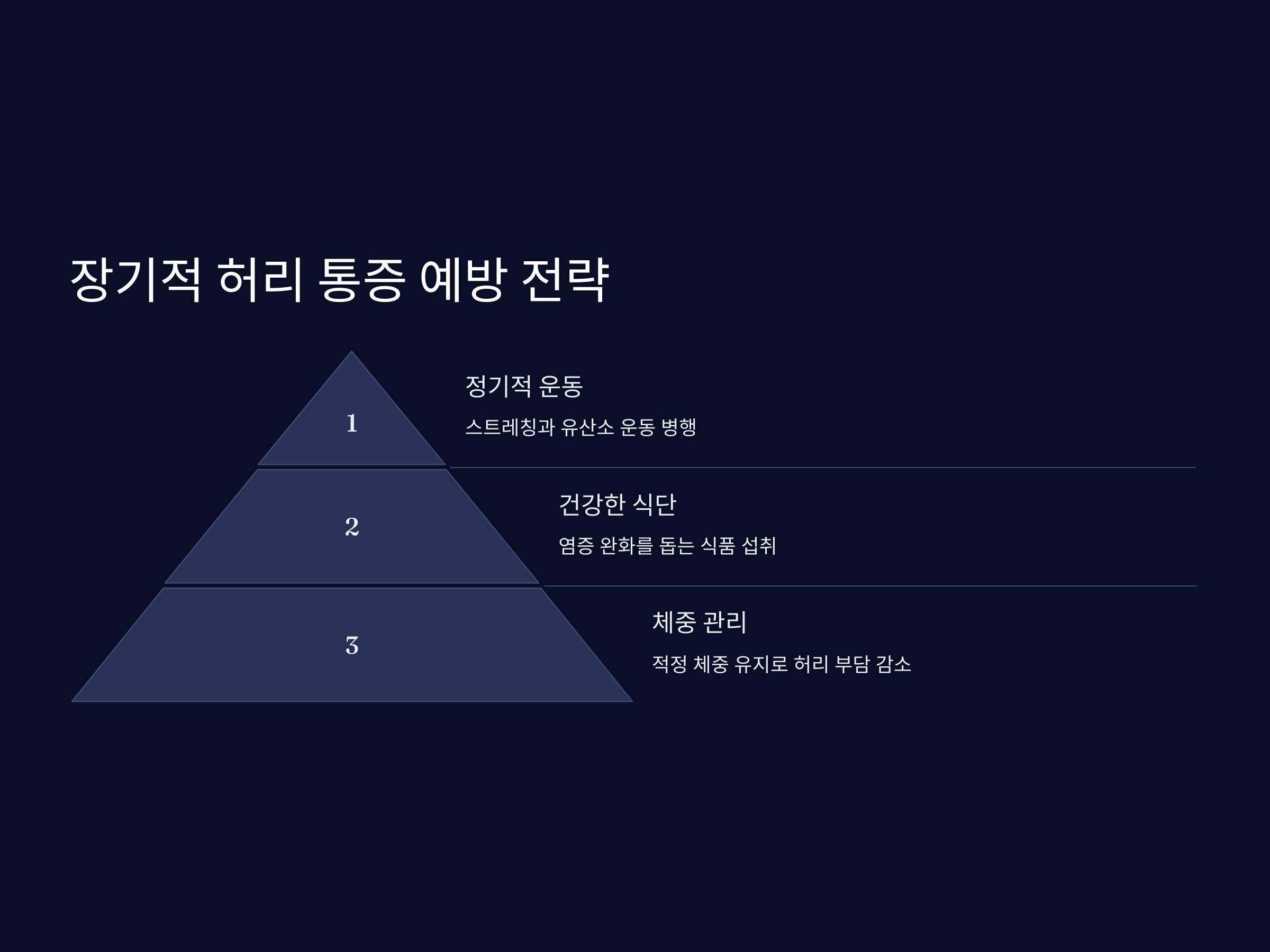 허리 통증과 수면 장애를 예방하려면 장기적인 생활습관 개선이 필수적입니다. 올바른 자세와 건강한 생활방식을 유지하세요.