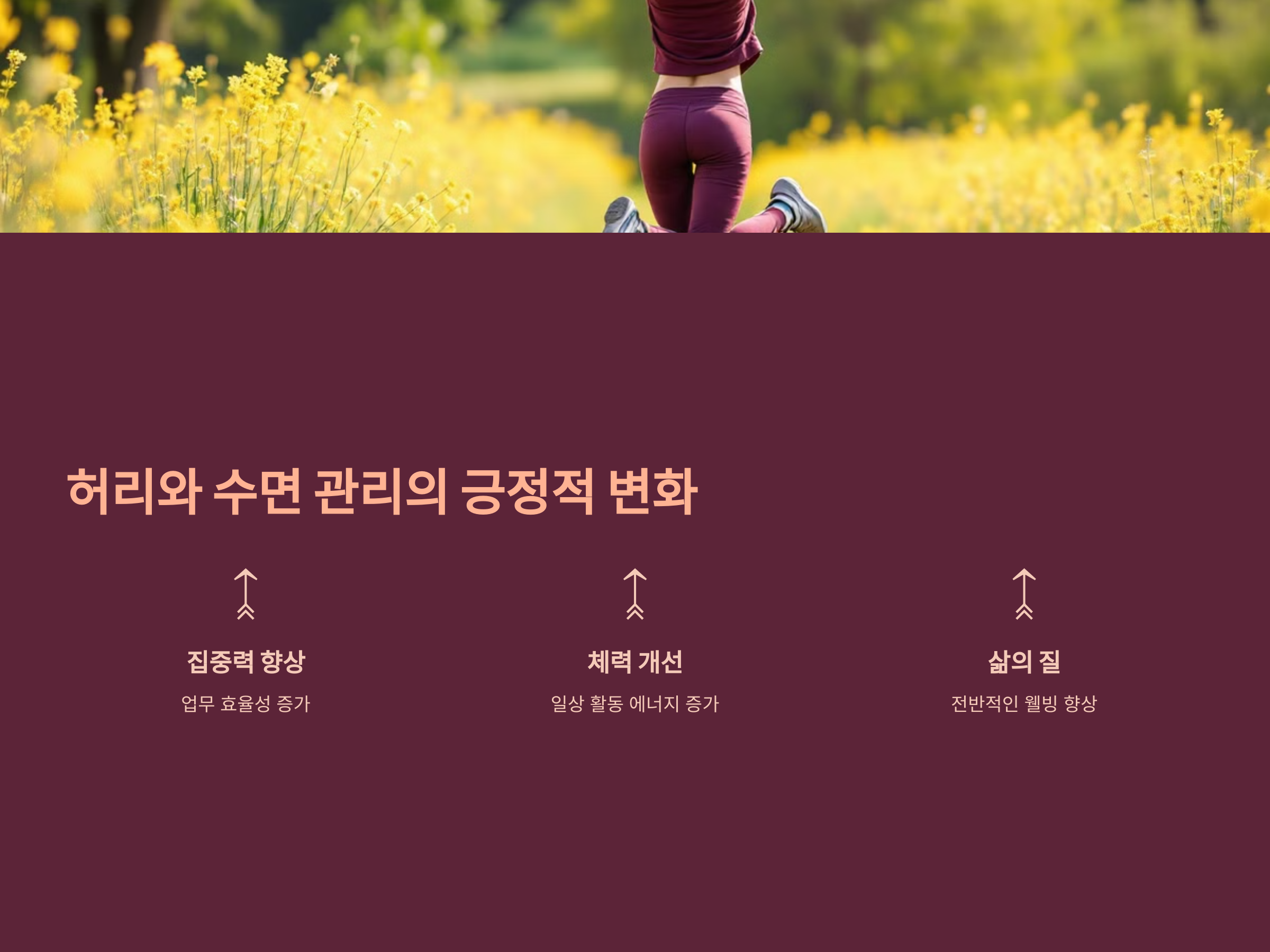 허리 통증을 줄이고 수면 패턴을 개선하면 집중력과 체력이 향상되며, 전반적인 삶의 질이 크게 높아집니다. 규칙적인 습관을 통해 통증 없는 활기찬 일상을 누리세요!