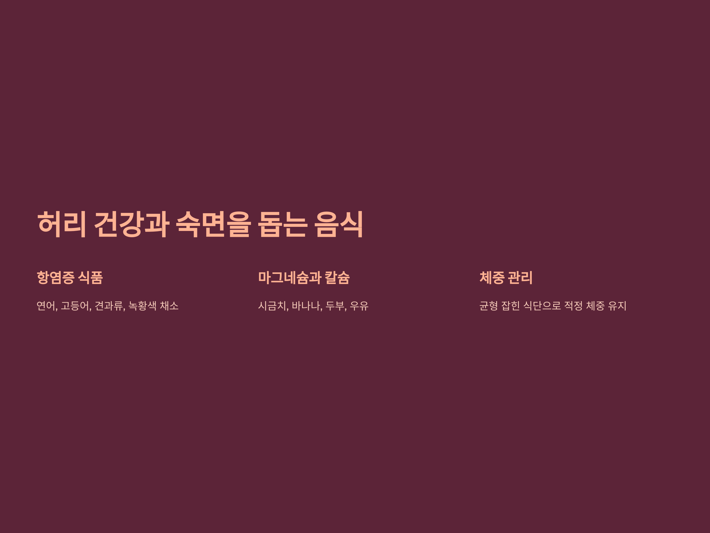 허리 통증을 줄이고 숙면을 돕는 음식